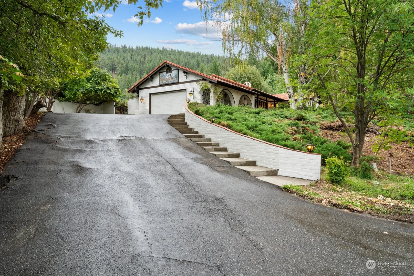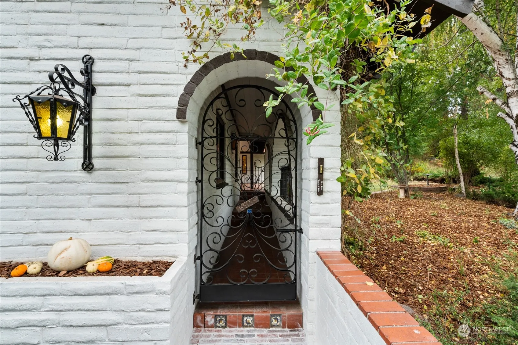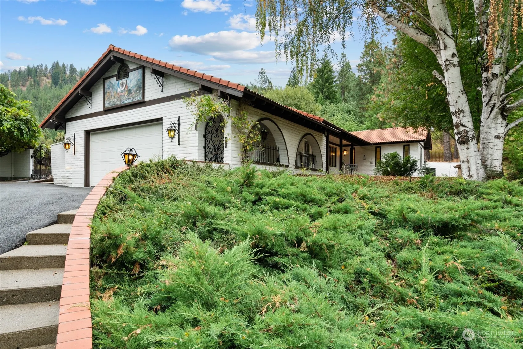 What an absolutely gorgeous home tucked far away from the hustle The architecture of this European style rambler with a large basement is absolutely stunning. You will love the arches throughout the interior and exterior and all of the wrought iron fencing and light fixtures as well as the very private patio with brick accents and center firepit. This home has been completely remodeled and is ready for you to move in and enjoy the solitude on this very private property with over an acre to spread out on. Lots of room for you to expand and even build an ADU on the lower section or possibly split off a lot to sell. Attached double car garage and all one level living with a possible separate living quarters downstairs.