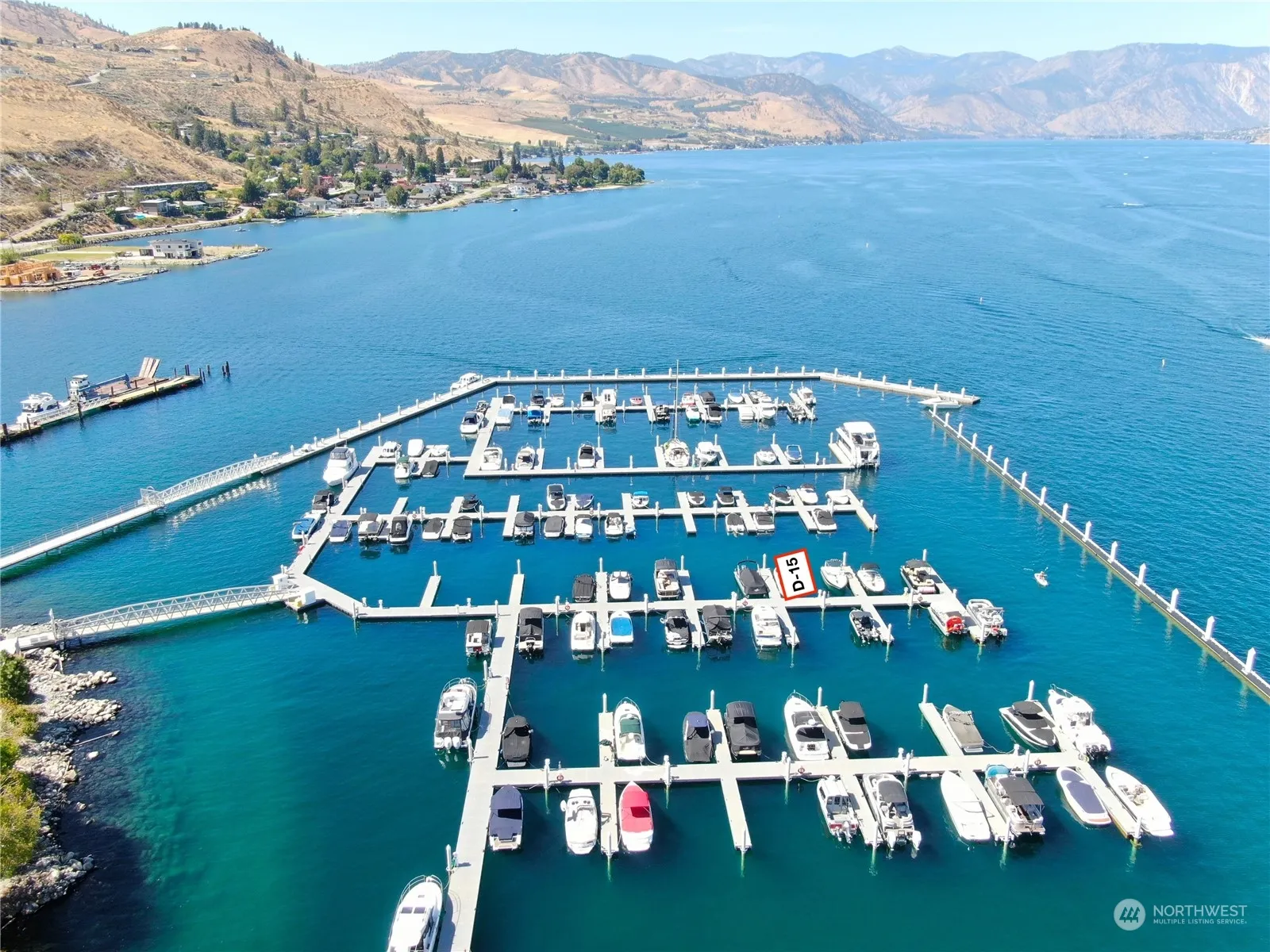 Experience Lakeside Luxury at Sunset Marina, an exclusive 24/7 gated marina offering deep-water, year-round moorage in the heart of Lake Chelan. Nestled on the highly sought-after D Dock, this 30-foot slip (D-15) offers prime positioning, providing superior protection and easy access. Enjoy quick in-and-out maneuverability and a short stroll to clubhouse. Slip enjoys full utilities including water, power, and Wi-Fi. Private Clubhouse offers wet bar, large TVs, fire pit, patio area, BBQ stands for grilling, on-site showers, and laundry facilities. Flexible short and long-term rental options. Location, convenience, and community – make your Chelan dream a reality at Sunset Marina!