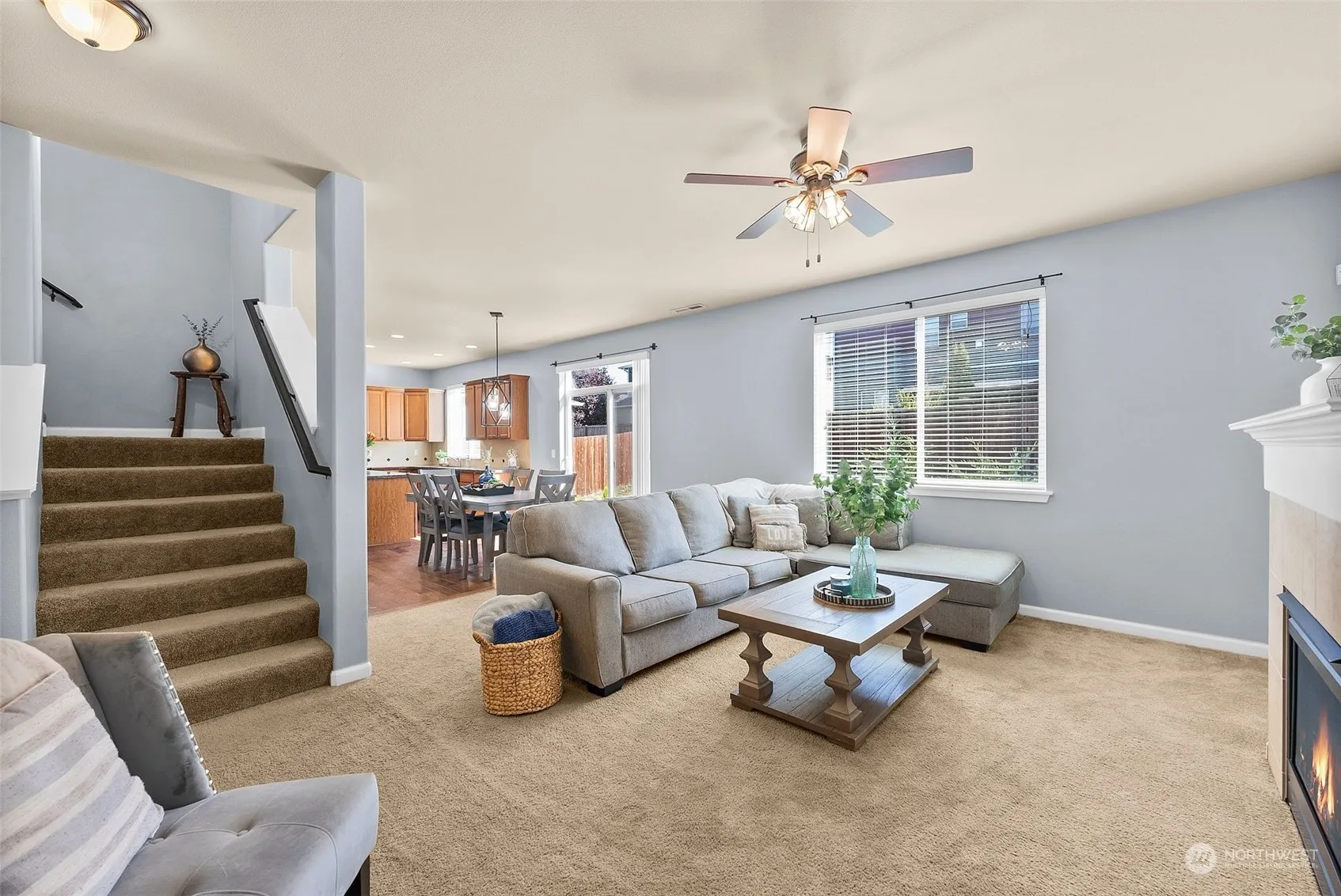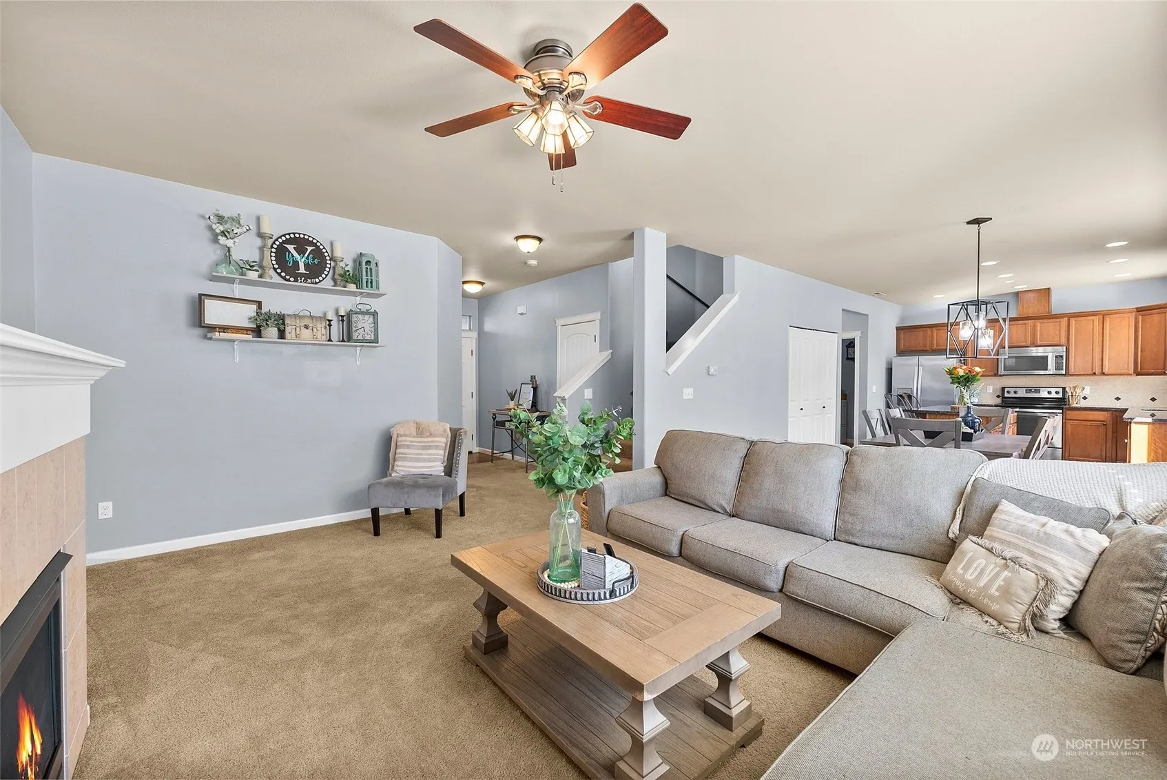 Back on the market with a new price! Seller completed a pre-inspection and serviced HVAC! Beautiful 3BR, 2.5BA, 2,100+ SF home! Includes an office on the main floor! Enjoy higher ceilings, engineered hardwood floors, and ceiling fans throughout. The stunning kitchen has a large granite island, ample counter space, and stainless steel appliances. Cozy up in the living room with a gas fireplace. The primary suite features a spacious walk-in closet, an additional closet, and 5-piece ensuite. A large loft with a closet offers potential for a 4th bedroom. The attached 2-car garage has an epoxy-sealed floor, large fenced backyard w/ built-in custom firepit! Close to JBLM, shopping, movies, schools, & parks!