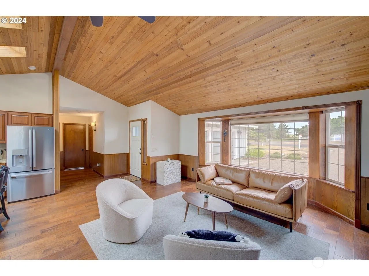 Nestled in the serene town of Ocean Park, this charming 3-bedroom, 2-bath home spans nearly 1,400 sq ft, blending modern amenities with coastal charm. Step inside to a spacious living area with vaulted wood-paneled ceilings that add rustic elegance, perfect for cozy gatherings. The updated kitchen features newer appliances, an island, and ample space for dining. The generous primary suite offers a peaceful retreat with ample storage and an updated bath. Outside, enjoy a double lot with almost 18,000 square feet and a large covered deck overlooking a canal with direct water access, an oversized 3-car garage, an additional 2-car garage, and utility sheds. Just a short walk to Ocean Park beaches—this isn’t just a home, it’s a lifestyle!