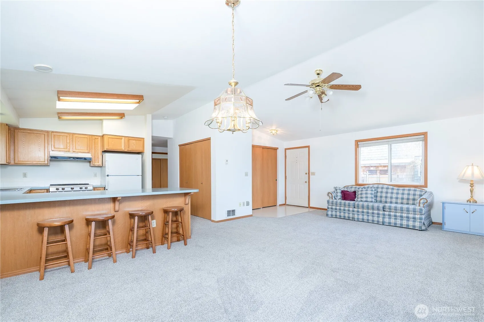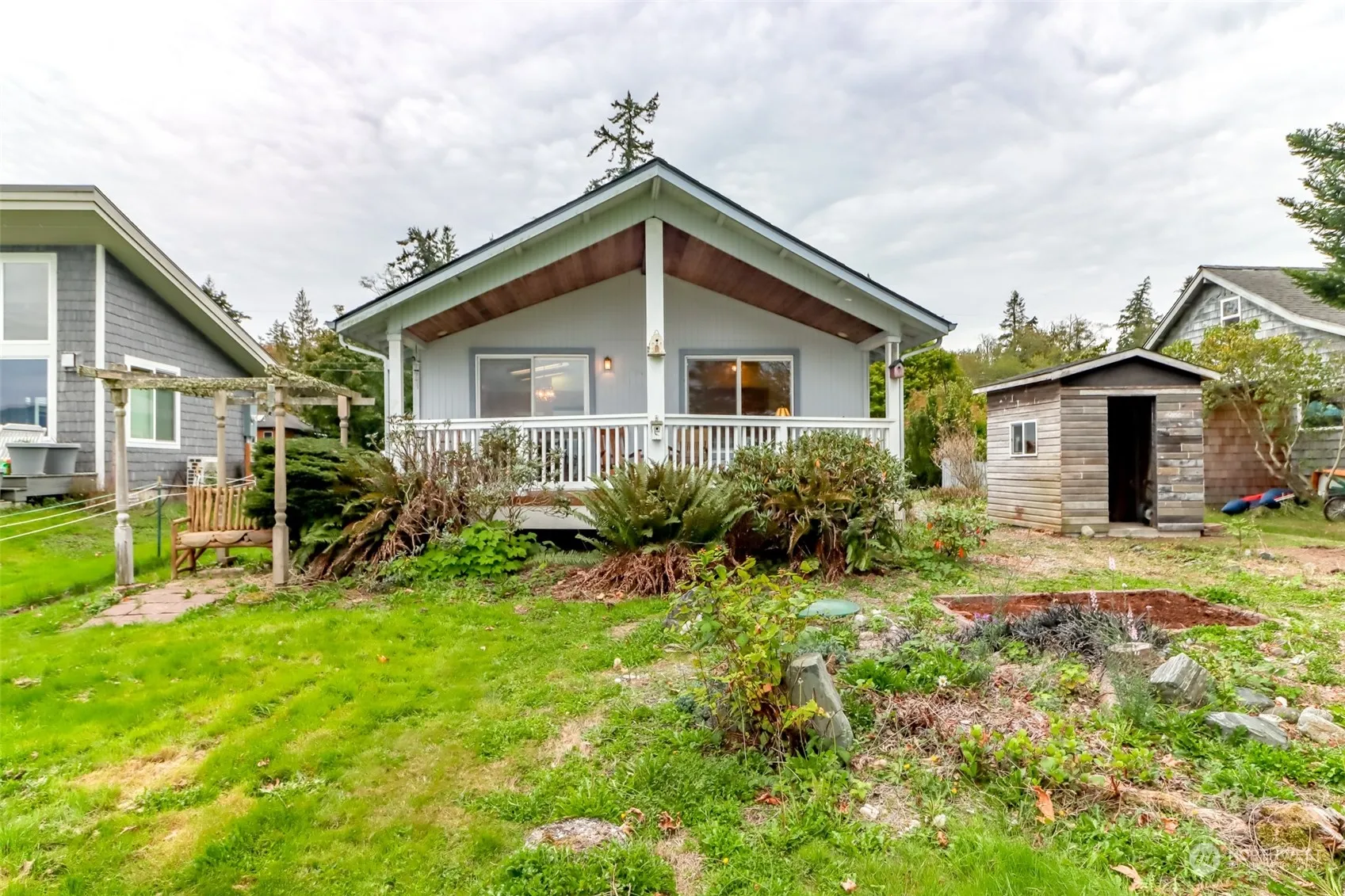 Step into this lovely two bedroom two bath home with spectacular views! With brand new carpet and fresh paint, there is noting to do but move in and make it your own. The primary bedroom features plenty of closet space, an oversized tub and large bathroom. The kitchen has a newer stove, breakfast bar, dining area all that opens to a large living room. Looking into the Samish Bay from a beautiful covered deck enjoy a great yard and garden. All of this plus over fifty feet of private beach access! This home has a newer roof is situated on a dead end street, with an attached garage and plenty of off street parking. Buyer to verify all info