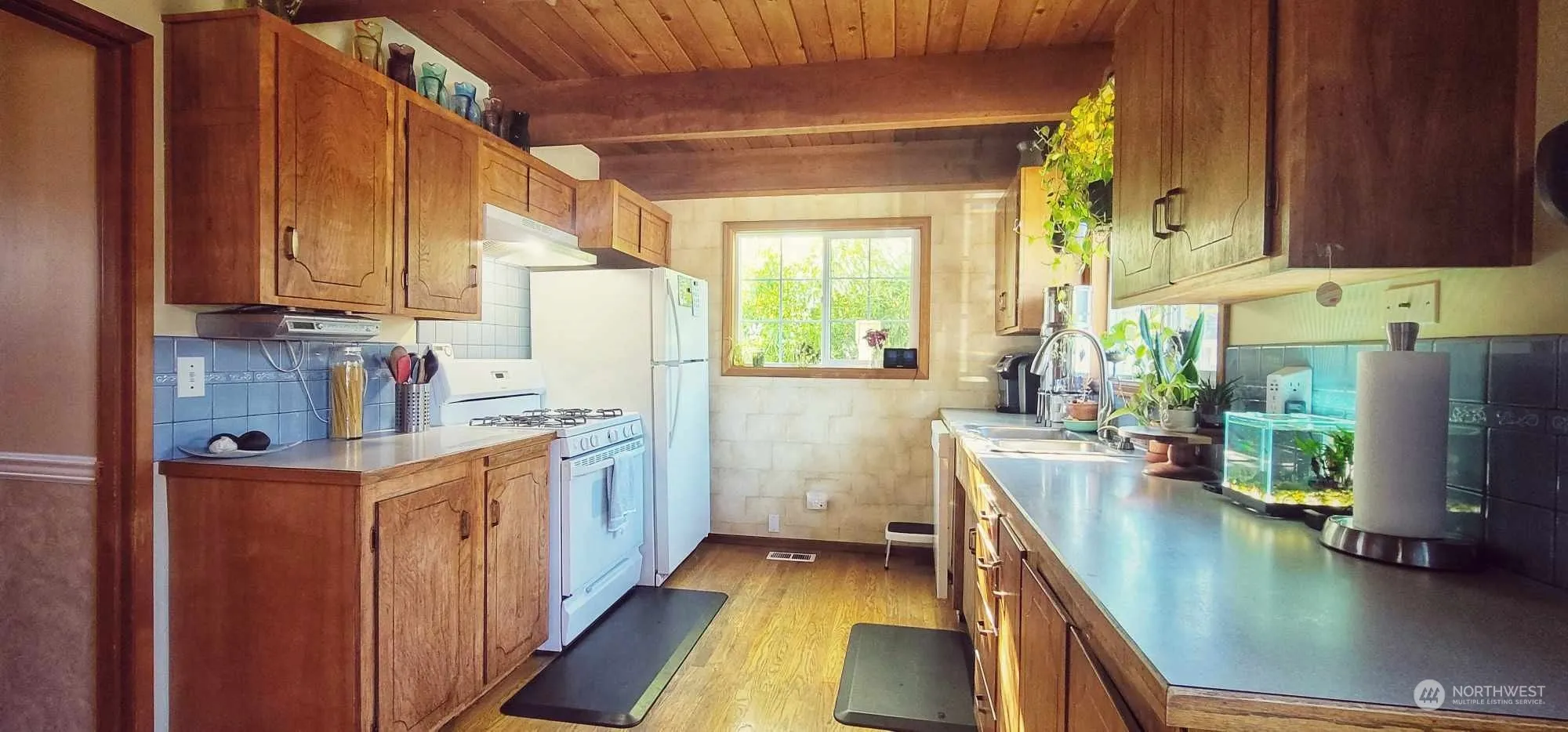 Act swiftly to capitalize on this outstanding opportunity for sweat equity! This captivating residence presents a rare blend of charm and potential, boasting wood flooring, beamed ceilings, and a warm wood-burning stove on a cobblestone hearth. The primary suite includes a 3/4 bath and balcony, while the lower level comprises a full bath with tile floors, laundry facilities, and a charming brick path to the outdoors. Unencumbered by HOA restrictions, the yard offers limitless possibilities for creative landscaping. Updated features include new water heater, furnace and panel. House has five y/o roof.