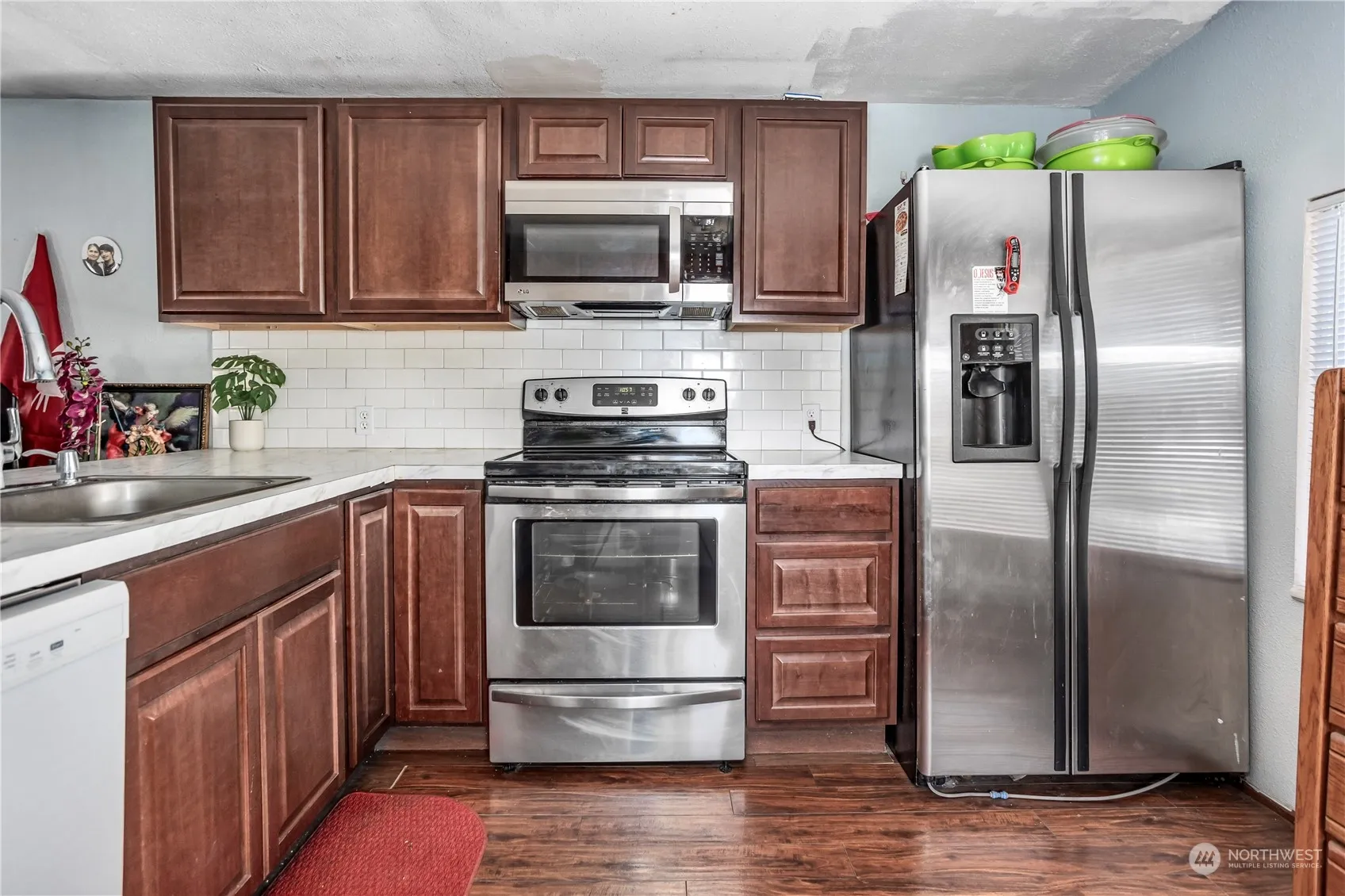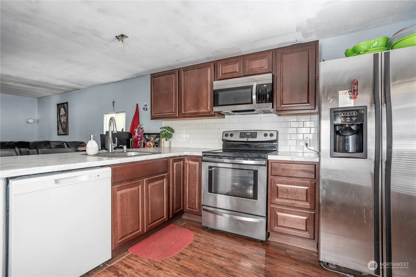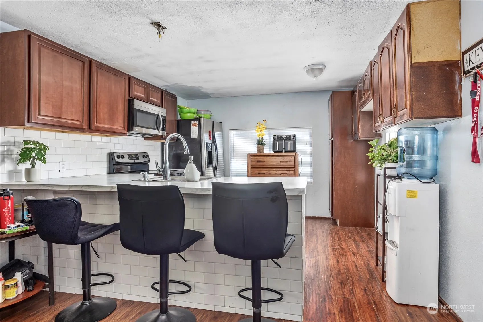 Experience affordable living in Yakima’s Alder Street Mobile Home Park! This 720 sq ft updated mobile home offers 2 bedrooms and 1 bathroom, featuring laminate wood flooring throughout. The kitchen has been updated with wood cabinetry, new countertops, a tiled backsplash, and breakfast bar, while the bathroom has also been refreshed. The lot rent, approximately $450, includes water, sewer, and garbage services. A spacious carport provides covered parking or a sheltered outdoor area to relax, complemented by a detached storage shop that can double as an extra room or storage space. Conveniently located just 5 minutes from Walmart and Target, with easy access to the highway for added convenience.