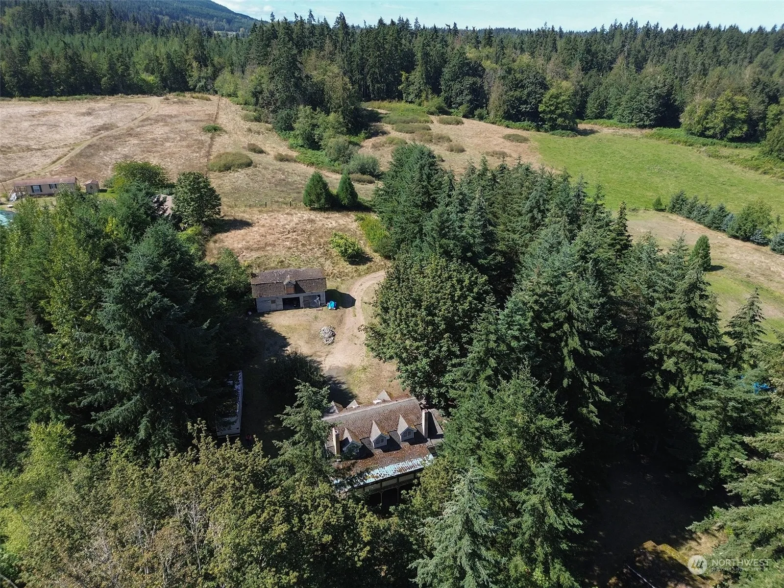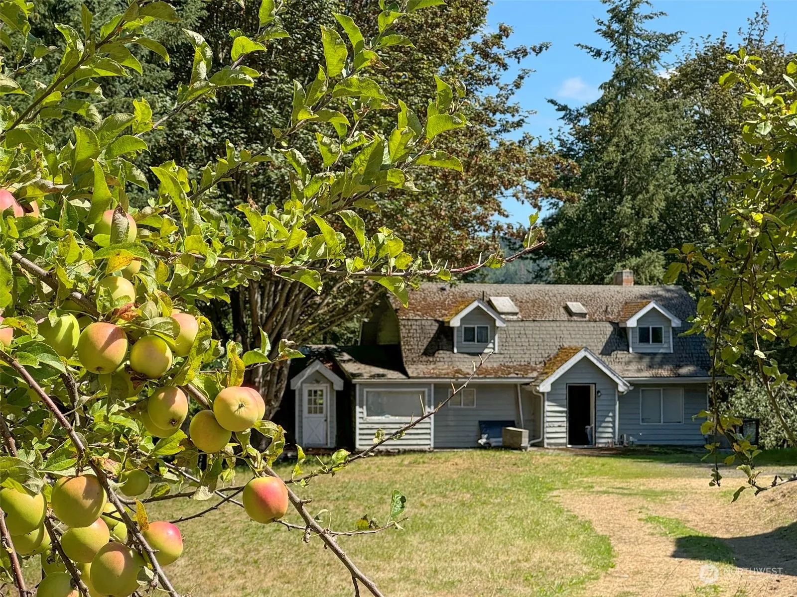 Embrace the potential of 2.57 outstanding acres, featuring a barn, pole building/garage, and a quaint orchard. Nestled at the end of a sweeping gravel driveway, this property offers unparalleled privacy with virtually no neighbors in your territorial view. Majestic trees and varied terrain enhance the picturesque setting. While the Dutch Colonial home is in a partial state of renovation and requires significant work, all services are in and readily available. The lofted garage offers ample storage but also needs attention. This property is sold as-is, where-is, with value placed on the land—ideal for contractors ready to take on a rewarding project or start a new one! Bring your ideas & imagination!