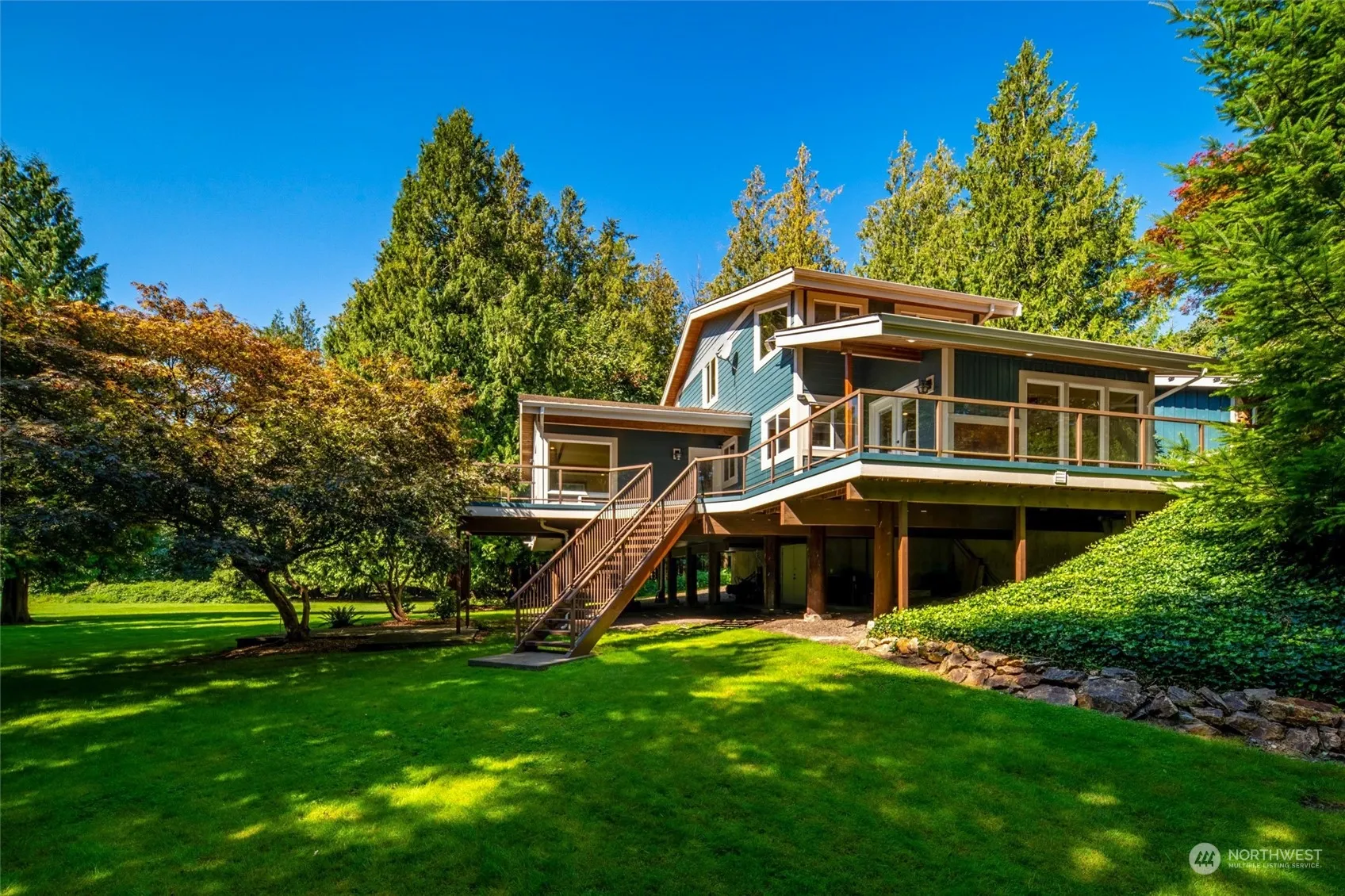You will never find anything like this in Lynden. Imagine being steps from Fairway Center, yet often visited by resident deer & spawning salmon. Parklike & sprawling 1/2ac creekside lot. Separately available is an 11,000sqft adjoining lot. Custom 4/5 bd, 3.5 ba home perched high above Fishtrap Creek & packed w/desirable features. Oversized bedrooms, endless storage, rec rm, bonus rm, wrap around deck, new furnace, central vac, intercom, A/C, & an oversized 720sqft garage. Complete custom rebuild in 2007. Spacious main floor owners suite w/covered deck & walk-in closet. Stunning kitchen, huge island, double oven, exposed beams, counters & cabinets galore & views to creek. Backyard flows into Dickinson Park w/8 ac of mostly forested parkland!