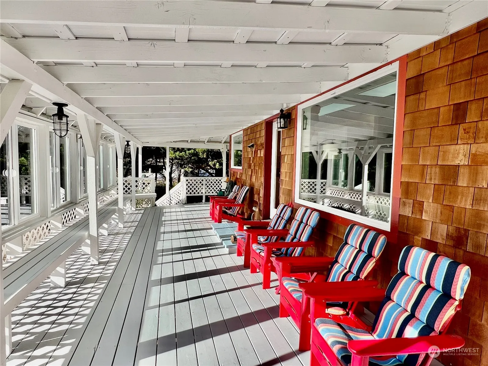 Wonderfully private spacious home on 105′ WUB Ocean frontage. Stunning white water ocean views from LR, Primary BR, kitchen & 750 sf wrap-around porch. 3BR, 2.75 bath. Primary BR has direct door to porch, large walk-in closet and private bath. High-end SS appliances in kitchen. Large skylights. Fully fenced grounds include BBQ area & path to beach. Tastefully & artistically furnished throughout. Cozy propane stove in open concept living room with exits to wrap around porch on 2 sides. Truly Turn Key! Every thing stays: furniture, artwork, appliances, pots and pans, linens and more. Must see… Move in Ready – by far the best buy per front foot on the market! MOTIVATED SELLERS