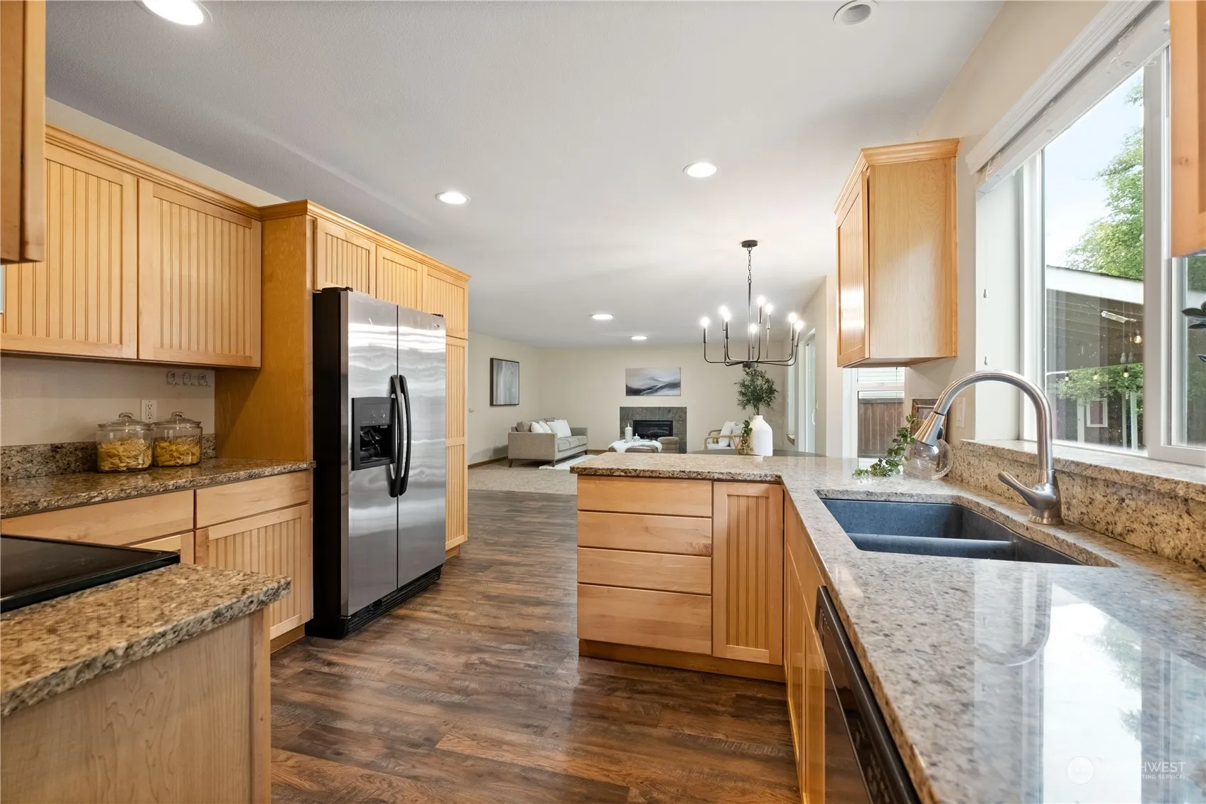 Your spacious & peaceful home has elegant updates, the perfect retreat after hiking at Rainier, fishing nearby lakes or visiting the falls. Enjoy a meal or entertain in your kitchen w/ granite counters & ample cabinets, opening right into large family rm. Head out slider to host a summer BBQ on your covered patio, roast smores by firepit at night, or quietly garden w/ sounds of wildlife. Downstairs also find large office, ½ bath, vaulted Living Rm & Dining Rm. End the evening upstairs in your primary suite w/ 5-piece bath, soaking tub & walk-in closet, or grab a blanket & seat on the bonus rm couch for a movie. 3 more Beds, possible RV parking & easy access to Meridian, Mt Hwy & all local amenities. About 5 min to restaurants & groceries.