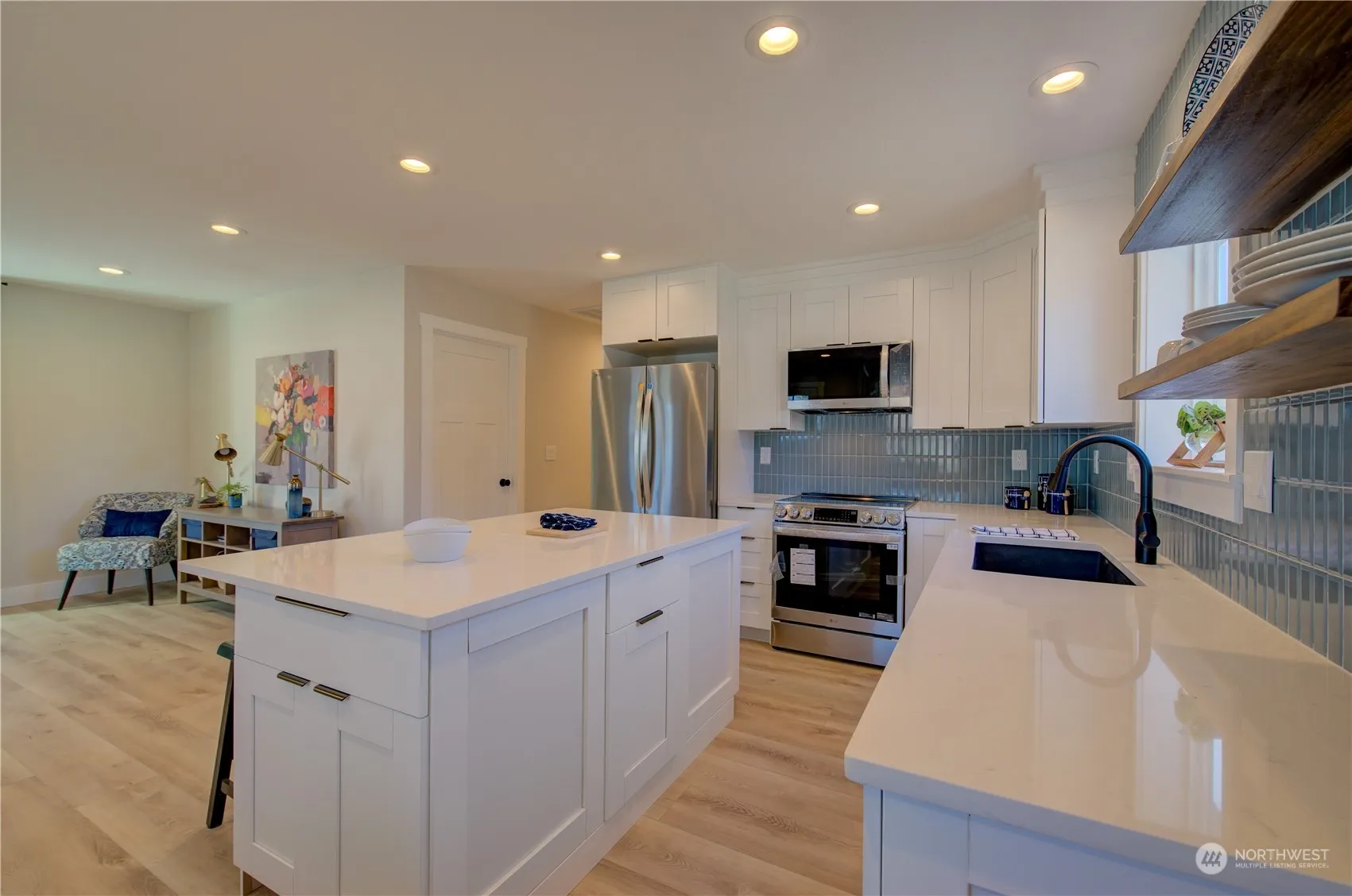 Introducing the newest home in Long Beach! 3 bed/1.75 bath, stick-built new construction home nestled on a corner lot along a quiet back road, just 3 min drive from the Boardwalk, or 9 min walk to Chautauqua trailhead. Living room, dining room, & kitchen flow together in a practical open floor plan. Stunning kitchen features gleaming white quartz countertops, gorgeous tilework, undermount sink, & a blend of high-quality cabinetry & floating shelves. Large center island with bar stool seating – don’t miss the pop-up outlets! Plenty of storage space throughout. Exterior features low-maintenance metal roof, concrete pad for parking, & composite decking on front porch & secluded deck. This home is your dream come true – schedule a tour today!