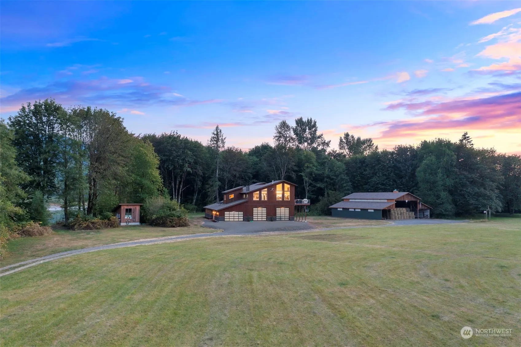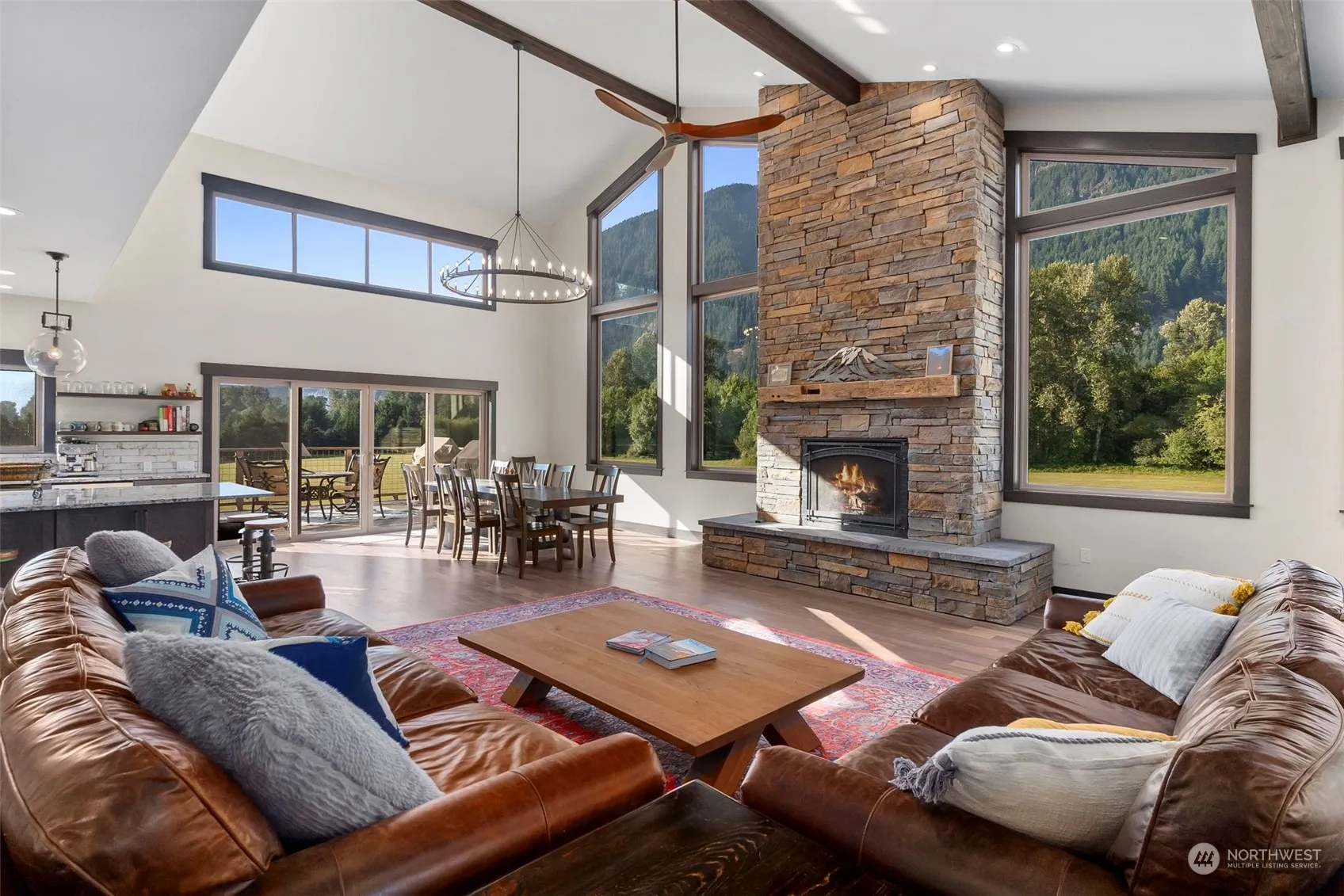 Experience 78 acres of paradise & luxury! Discover unparalleled elegance with this custom-built estate offering stunning river and mountain views. The home features an open-concept living space with soaring ceilings, picturesque windows, and a gourmet kitchen with Café appliances and a grand island. Enjoy the spacious living room with a cozy fireplace and an expansive dining area leading to a large outdoor deck. The master suite includes a walk-in closet, a spa-like bathroom with a soaking tub. Additional highlights: two large bedrooms, a den, a huge barn, RV hookups, area for private airstrip, private hunting grounds and river access. Embrace this unique blend of exquisite craftsmanship, natural beauty and where the elk roam! Rare find!