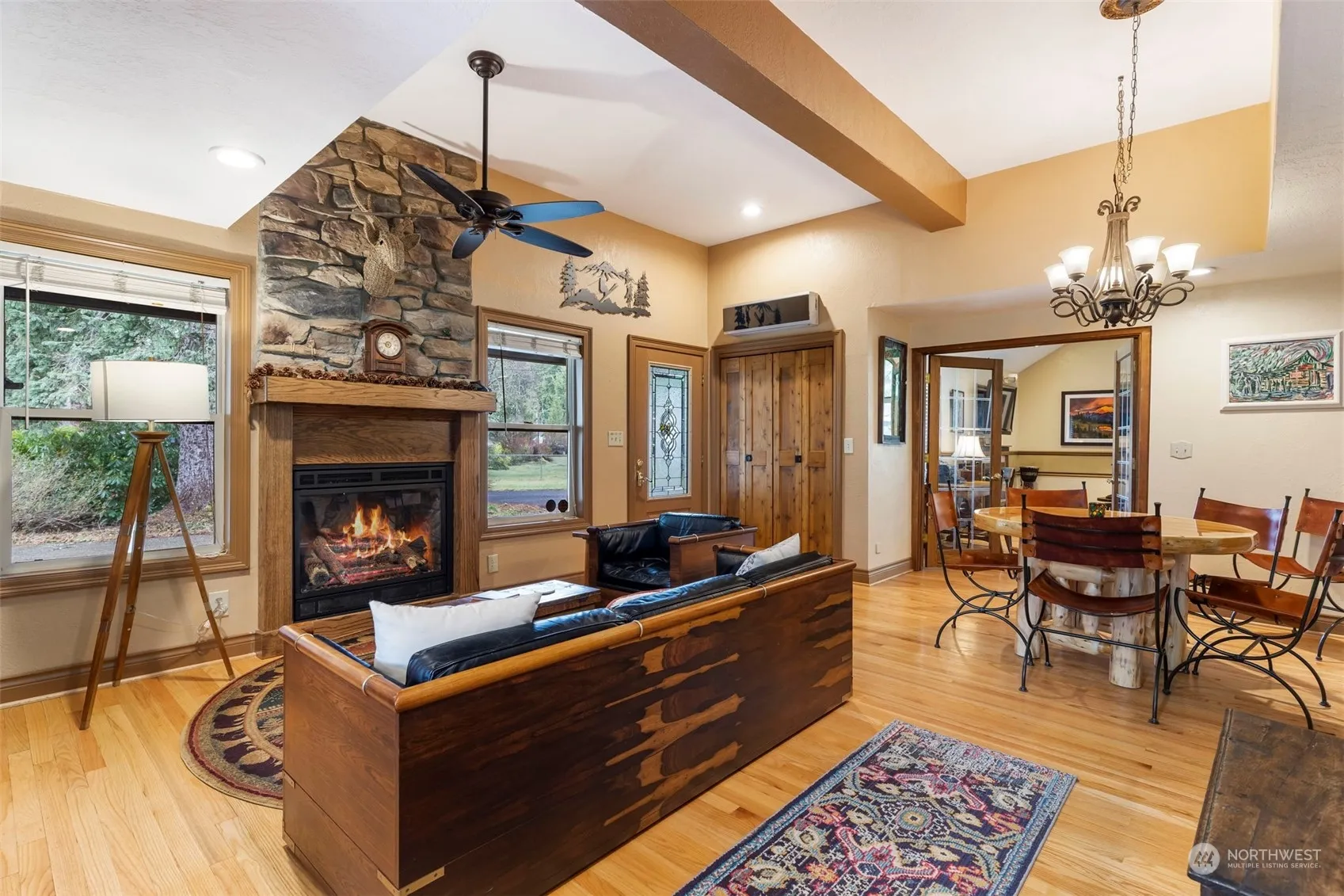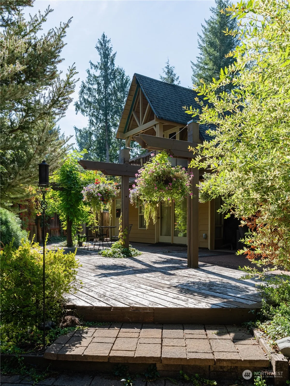 Spacious mountain living cabin with EVERYTHING — licensed rental, studio & garage. Main home is 2BR, 3BA, 1906sf. It features a light & lovely kitchen, dining, den & living rooms w/fireplaces, laundry, office & many upgrades. Upstairs, a bedroom, bonus rm w/ covered balconies & bath. Yard has mature landscaping, sprinkler system, patios, hottub & covered space. PLUS — 872sf permitted 2BR/1BA RIVERS COTTAGE w proven AB&B income, kitchen, living room, dining area, & laundry. Updated permitted septic. HOA dues include water, golf, & pools. Amazing location! Walk to Cowlitz River nature paths and hiking in the Gifford Pinchot Nat’l Forest just out your door. 30 min from White Pass Ski Area & Mt Rainier Nat’l Park. 10 into town of Packwood.