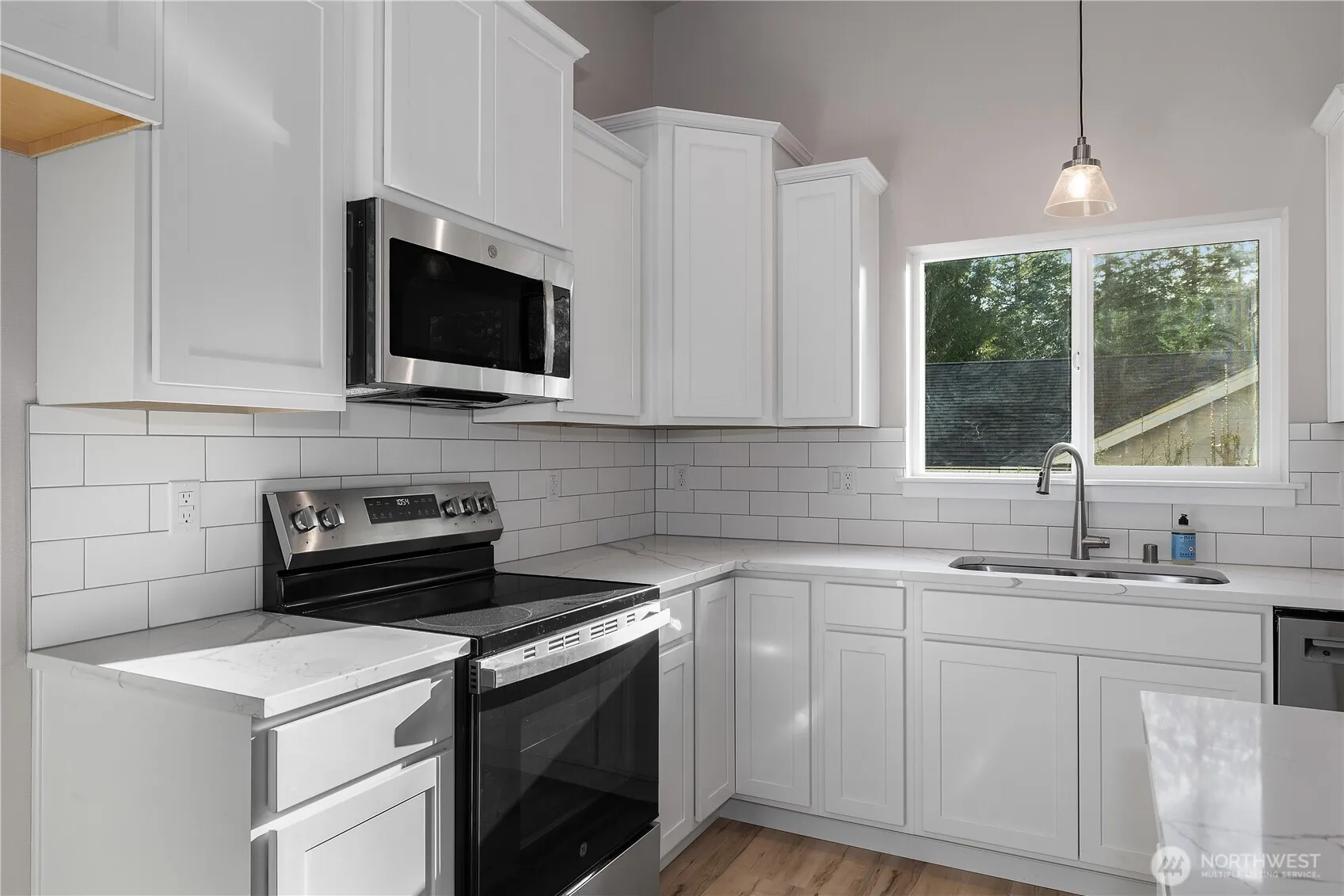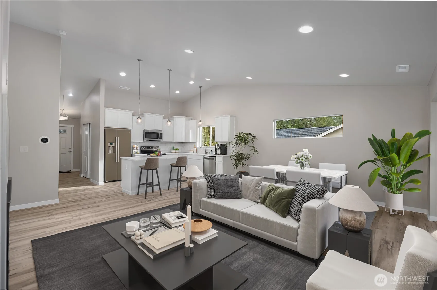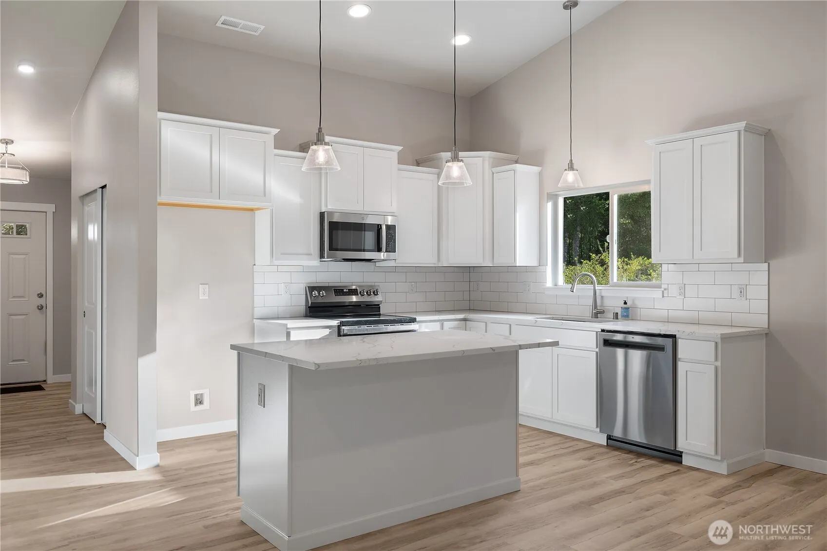 One-level, nearly 1,800 sq ft new construction home (2025) ready for you to enjoy the Alderbrook lifestyle! Thoughtfully designed with a spacious great room, 3 large bedrooms, and a flexible study or formal dining room. The kitchen and baths feature shaker cabinets, quartz countertops, and classic subway tile backsplashes. Highlights include 2 covered patios for year-round enjoyment and a rare 751 sq ft 3-bay garage—perfect for storage, hobbies, or parking. Low-maintenance finishes inside and out make daily living easy. Recent upgrades include top-down bottom-up blinds in bedrooms and brand new washer and dryer to make this home truly move in ready. Driveway paving? Lets talk!