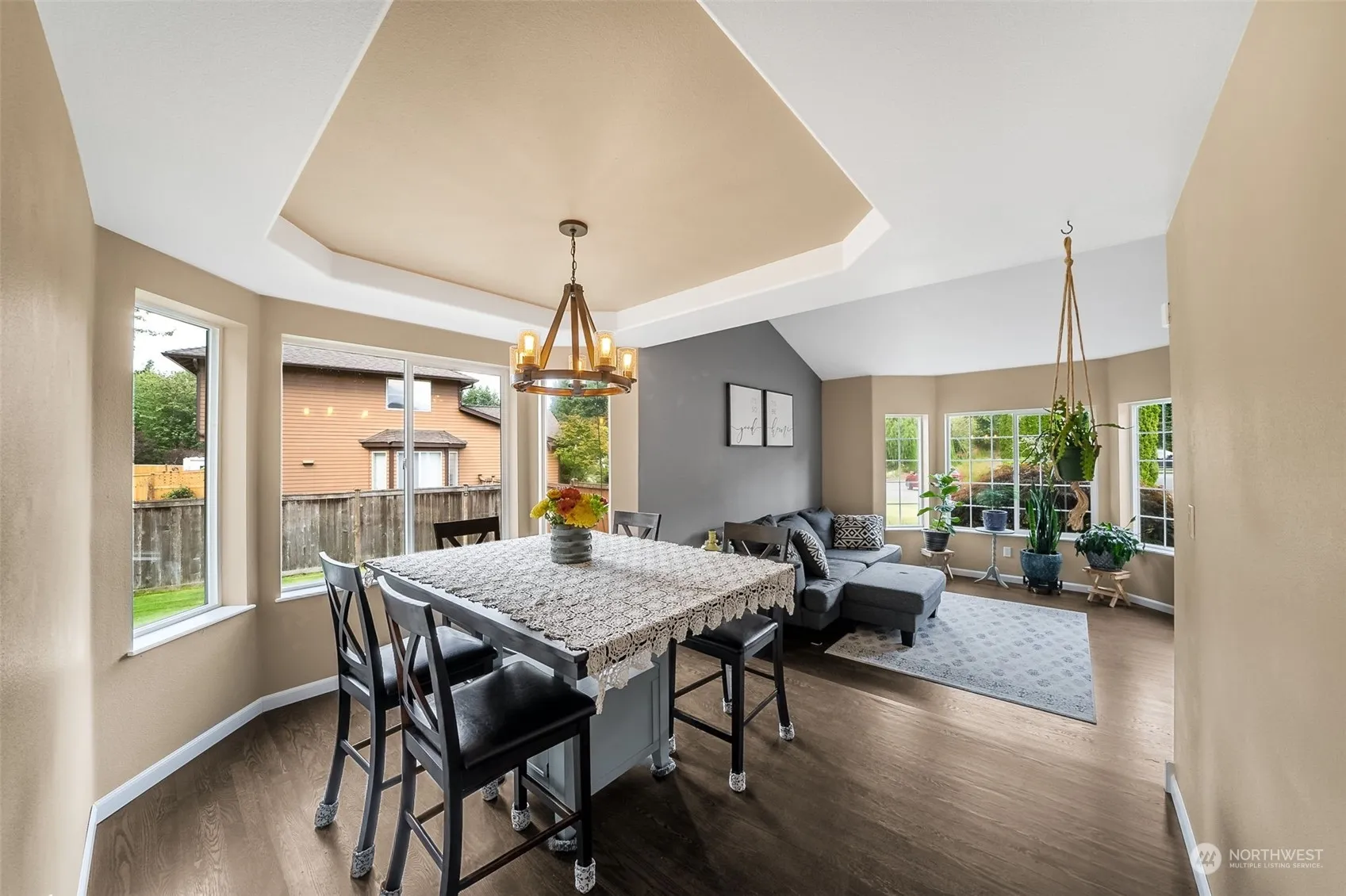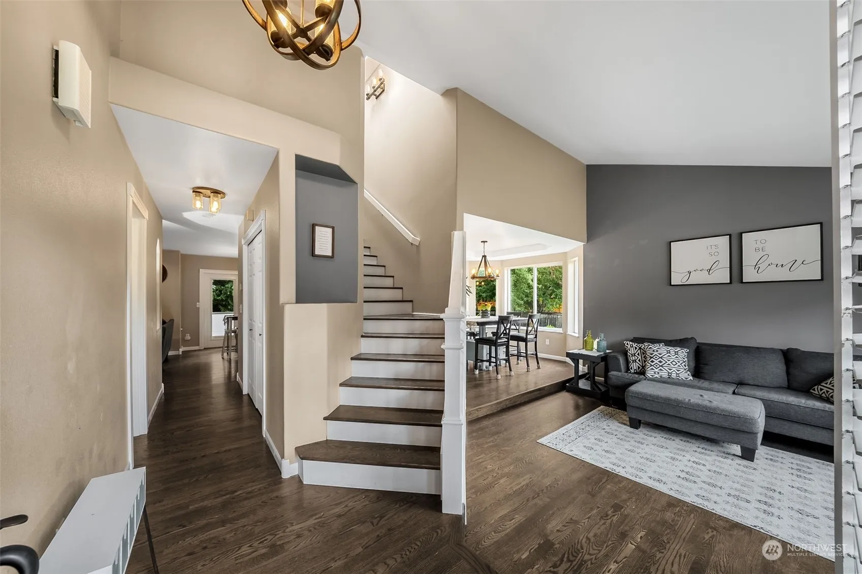 This beautifully remodeled, move-in ready home on over 1/3 acre, offers a perfect blend of modern amenities & outdoor space. The main floor features a rare 2nd primary suite—ideal for guests or multigenerational living, along with 2 spacious living areas, formal dining, & a stunning kitchen with quartz countertops, hardwood flooring, & stainless appl. Upstairs, the primary suite boasts dual walk-in closets & a luxurious 5-pc bath, complemented by 3 additional bedrooms, a full bath, & a versatile office/den. Enjoy Dieringer schools, the comfort of AC, a huge patio for entertaining, garden beds, RV parking, & a shed for extra storage. With fresh paint, all appliances included, and short walk to North Tapps Park, this home truly has it all!