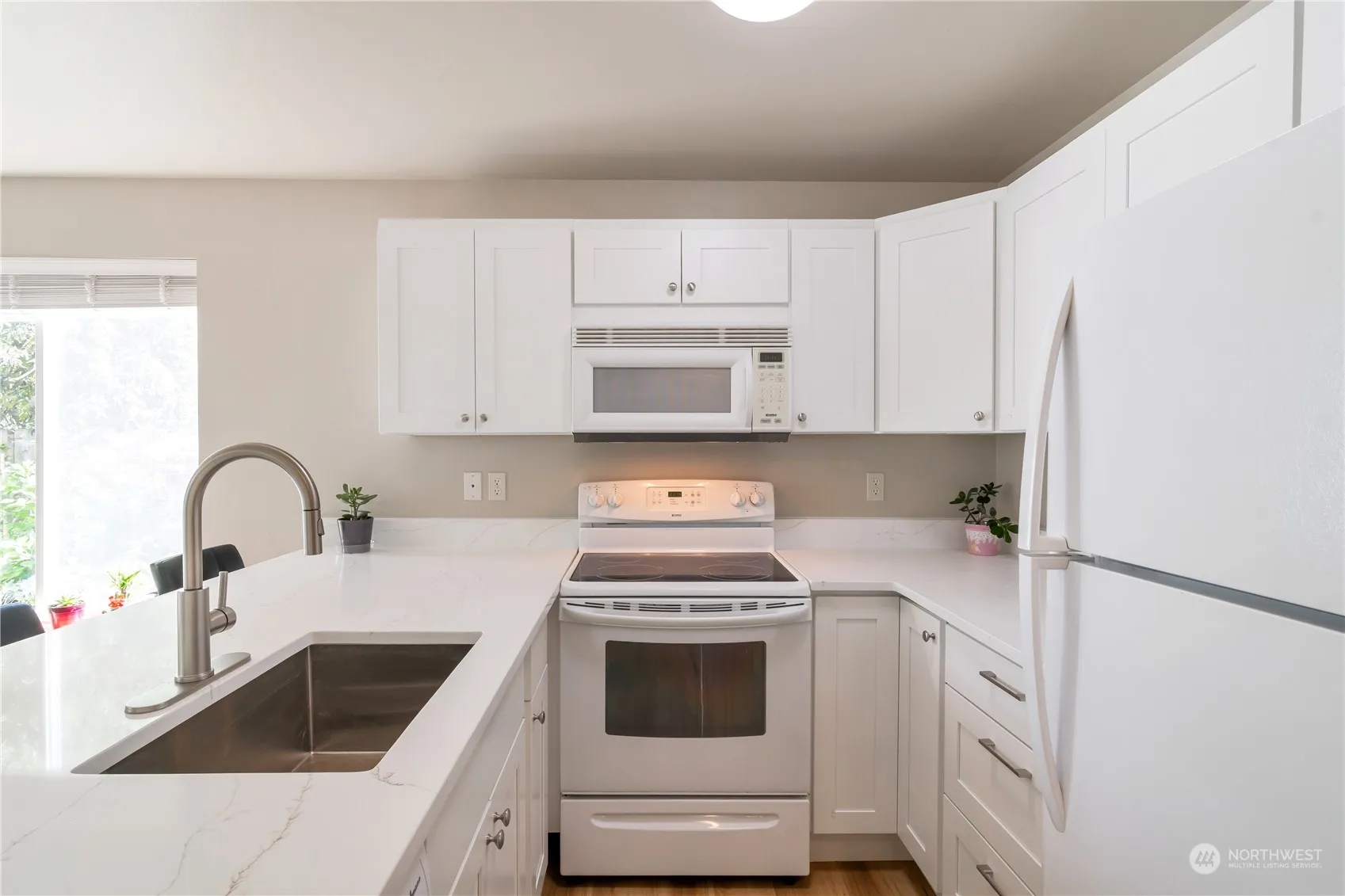 Price Adjustment. Welcome to your new home! End Townhome unit in charming Stanton Village, a well-maintained community. Attached garage with large private, fenced patio. Brand New Kitchen and Quartz countertops. Kitchen w/plenty of storage, eating space +eating bar, slider to patio. Beautiful flowering tress & arched garden gate. Main suite w/lots of closet space & en-suite bath. Convenient upstairs laundry, washer/dryer included. The unit has carpet, luxury vinyl laminate flooring. Plenty of natural light. New, recently replaced roof. Room in rental cap. Great neighborhood, minutes to parks, shopping & dining. EZ Eastside commuter access via Hwy-522, & quick Hwy 2 access to Snohomish, Everett and recreational activities.