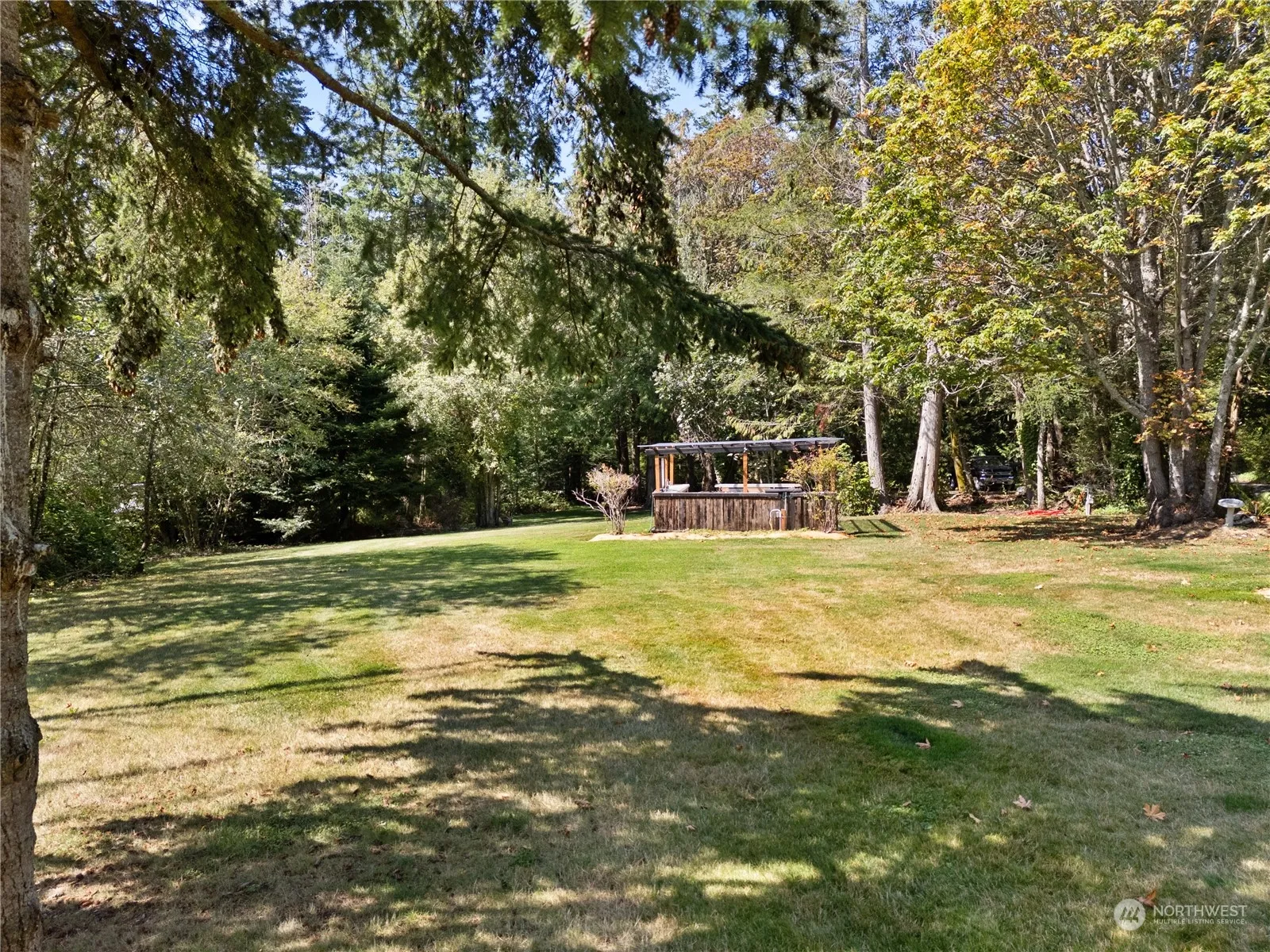 This expansive property offers an abundance of space & modern comforts, making it the perfect retreat. Step outside to the covered outdoor kitchen, complete with a center island, ideal for hosting gatherings year-round. In 2021, the home underwent significant updates, including a new roof, skylights, & fully replaced water lines. The kitchen showcases stunning butcher block countertops, a stylish tile backsplash, & sleek new appliances. Spanning 40,000 sq ft, the lush green lawn offers endless possibilities, while the front deck, beautifully refinished invites relaxation. Garden areas are thoughtfully equipped w/water & power, perfect for the gardening enthusiast. This property is truly a blend of charm & modern living. NOT on leased land!