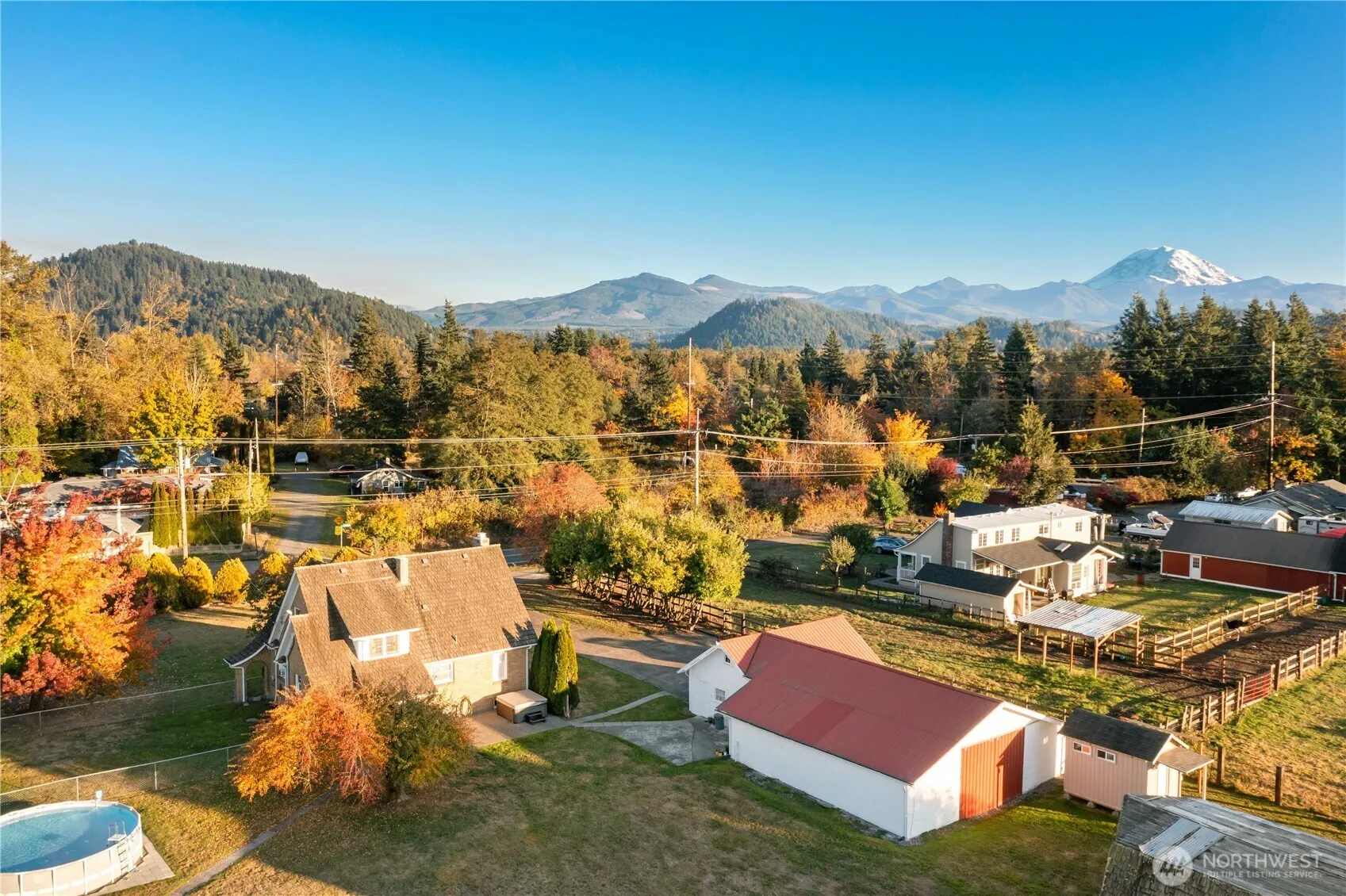 Entertainers DREAM Property in the Heart of Enumclaw. As you enter the home you’ll immediately notice the attention to detail & craftsmanship that has gone into every inch of the property. This charming country farmhouse w/views of the Foothills & Mt. Rainier on 2.39ac boasts 2,668SF, 3bed, 2.25bath, primary on main level, living room w/gas fireplace, sunroom, den/office & dining room w/built in hutch! Exquisite kitchen w/custom cabinets, quartz counters & large pantry. Updated electrical & plumbing. This spectacular property features: Beautifully landscaped~ Abundance of parking~1,496SF Shop~2 Barns~8×12 Shed~Fruit Trees~Fully Fenced Pasture~Hot Tub~Pool~RV Parking+NO HOA! Perfect property to bring your animals & toys! Check out the video!