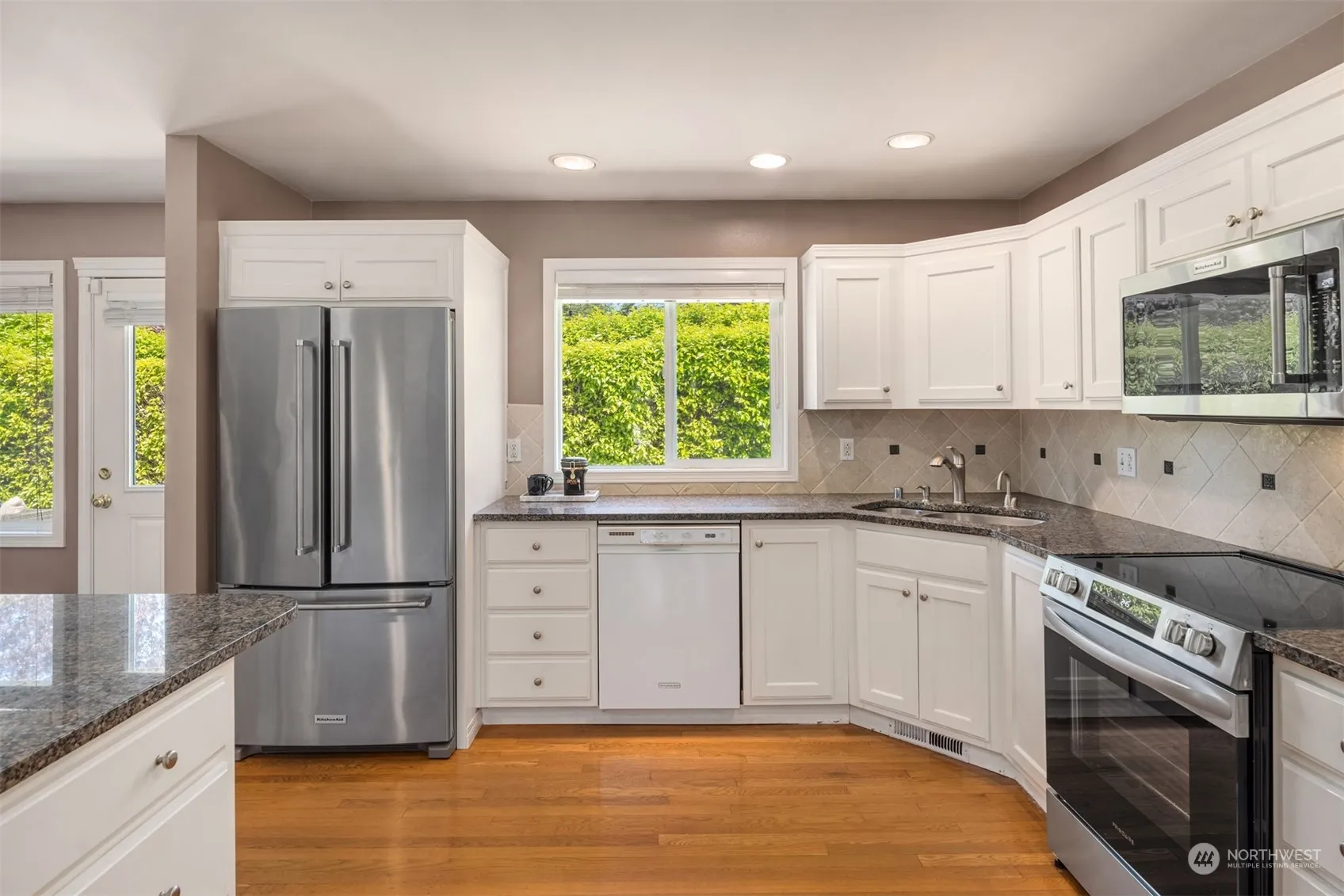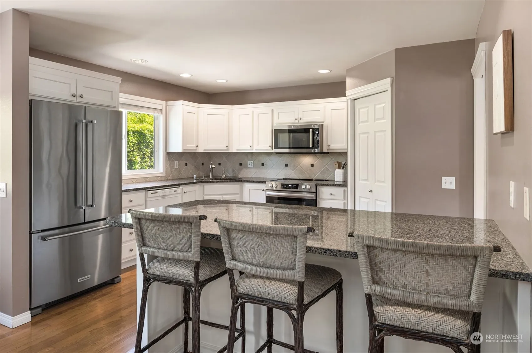Beautifully maintained single-level home in the highly sought after Camaloch Community. Light-filled kitchen features a walk-in pantry and luxurious granite countertops. Living room with custom built-ins and gas fireplace seamlessly flows into the dining room for easy entertaining. Private patio with mature landscaping offers a park-like retreat. Well-appointed primary bedroom features en-suite bath with tile shower and abundant storage. Second bedroom offers ample space. Den/office with custom built-in desks and shelving. Attached two-car garage with additional golf cart space. Garden sheds offer additional storage. Located in a gated community with low HOA dues, this home offers access to unlimited golf, two pools, lake, and more.