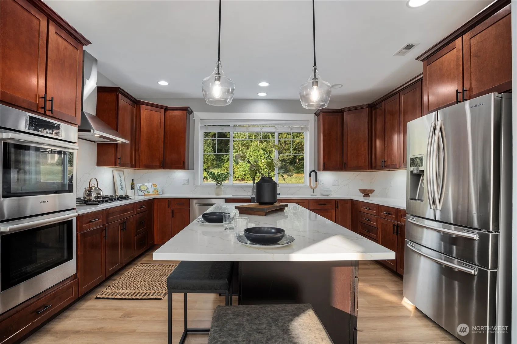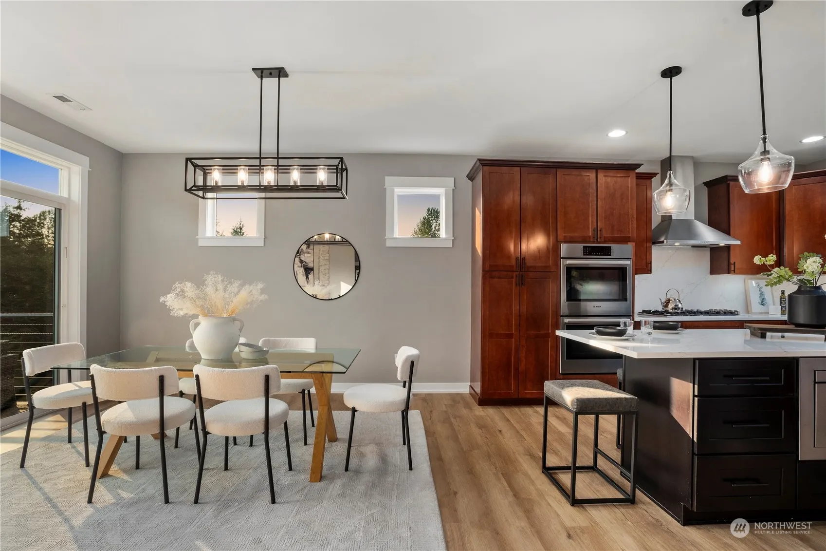 Sitting on a 1.29 ACRE LOT! Nestled in the Cascadia Highlands community, this 3,559 sq ft home offers a rural retreat with modern amenities. Featuring 4 beds 3.25 bath,it boasts an open-concept living & dining area & a spacious completely REMODELED kitchen ideal for gatherings. The main floor includes an office/flex room & a 3/4 bath.Enjoy a finished basement complete w/ movie theater, seating, blackout curtains & a beverage fridge.Skip the gym membership & use your private home gym! The basement walks out to a patio overlooking 78 acres of HOA-owned forest & trails. The backyard includes a fire pit & raised garden beds for serene outdoor living. Upstairs,find 4 bedrooms,including a primary suite w/an updated 5-piece bath & a utility room.