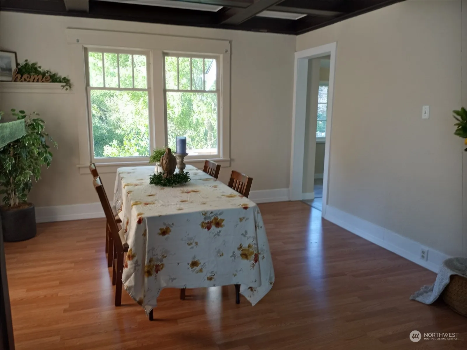 Come see the timeless charm of this Craftsman home featuring magnificent original wood trim. The main floor offers two bedrooms, a full bath, a living room with a wood fireplace, a remodeled kitchen with an eating area, and a formal dining room. Upstairs, a large open space serves as an additional bedroom or versatile living area. The basement adds 1008 square feet of usable space; perfect for a workshop, storage, and parking a small car. The fenced yard is great for dogs, gardening, or backyard barbeques. Act fast, this beautiful home is priced to sell! Please remove shoes or wear shoe coverings before entering the house.