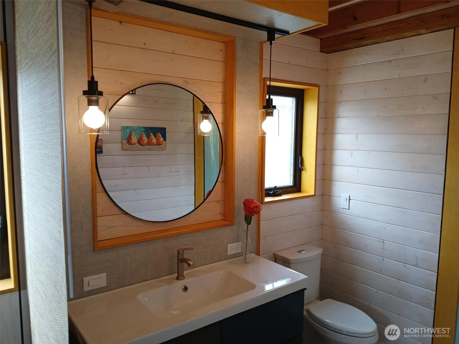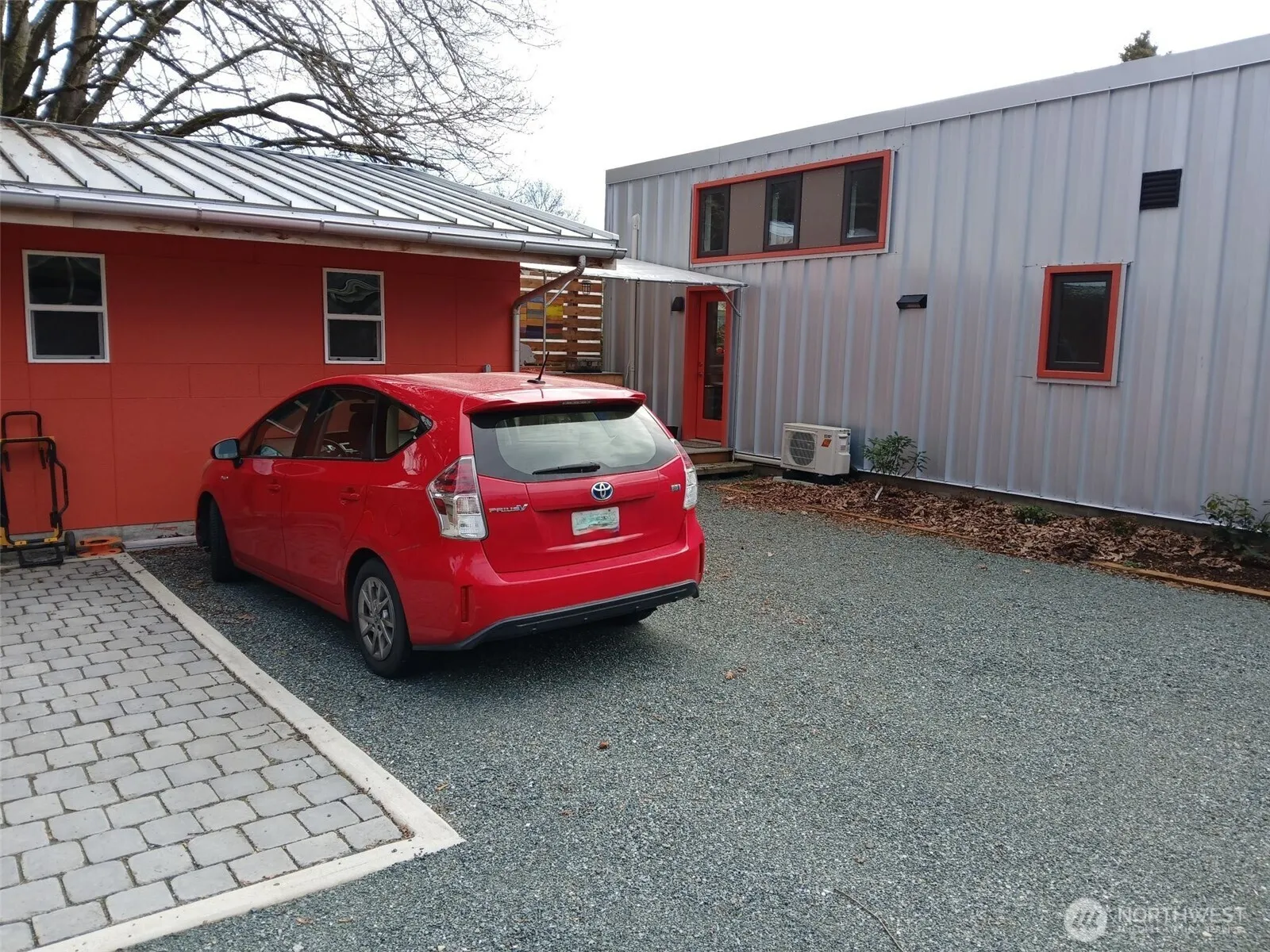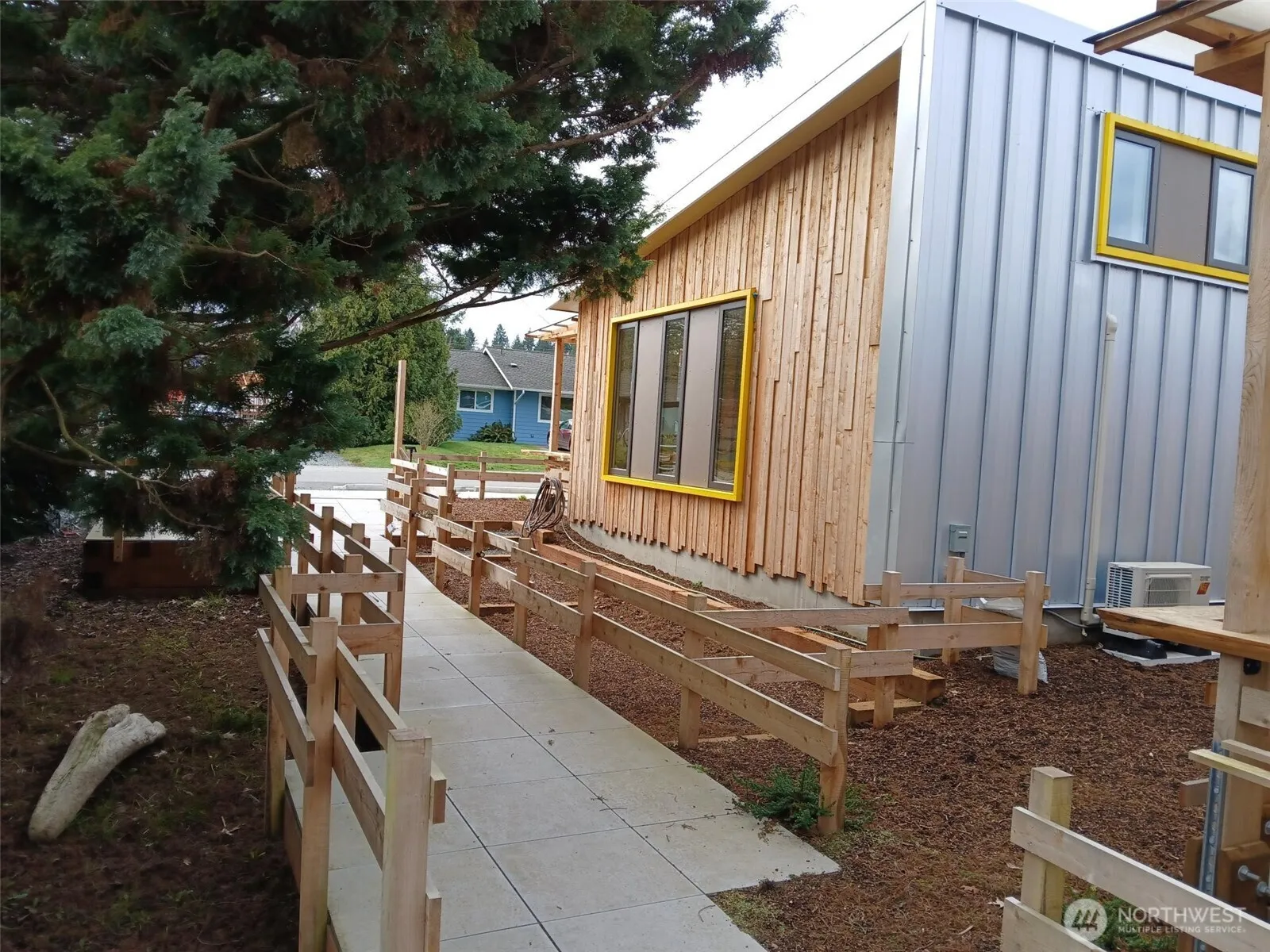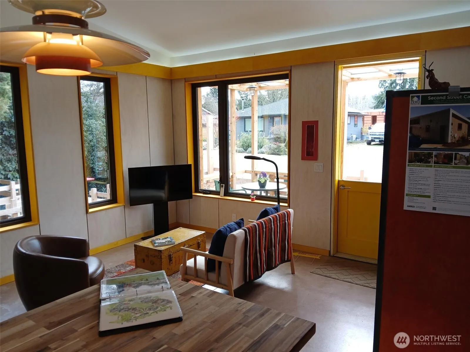 Unique, one level, one bedroom zero energy detached home, modern green design, flexible and colorful interiors, onsite parking, covered front porch, private yard and 2 blocks from village. Like living on vacation – simple and minimalist. Built by Jim Soules, developer of many award winning pocket neighborhoods. Likely only certified zero-enrgy home in Langley.