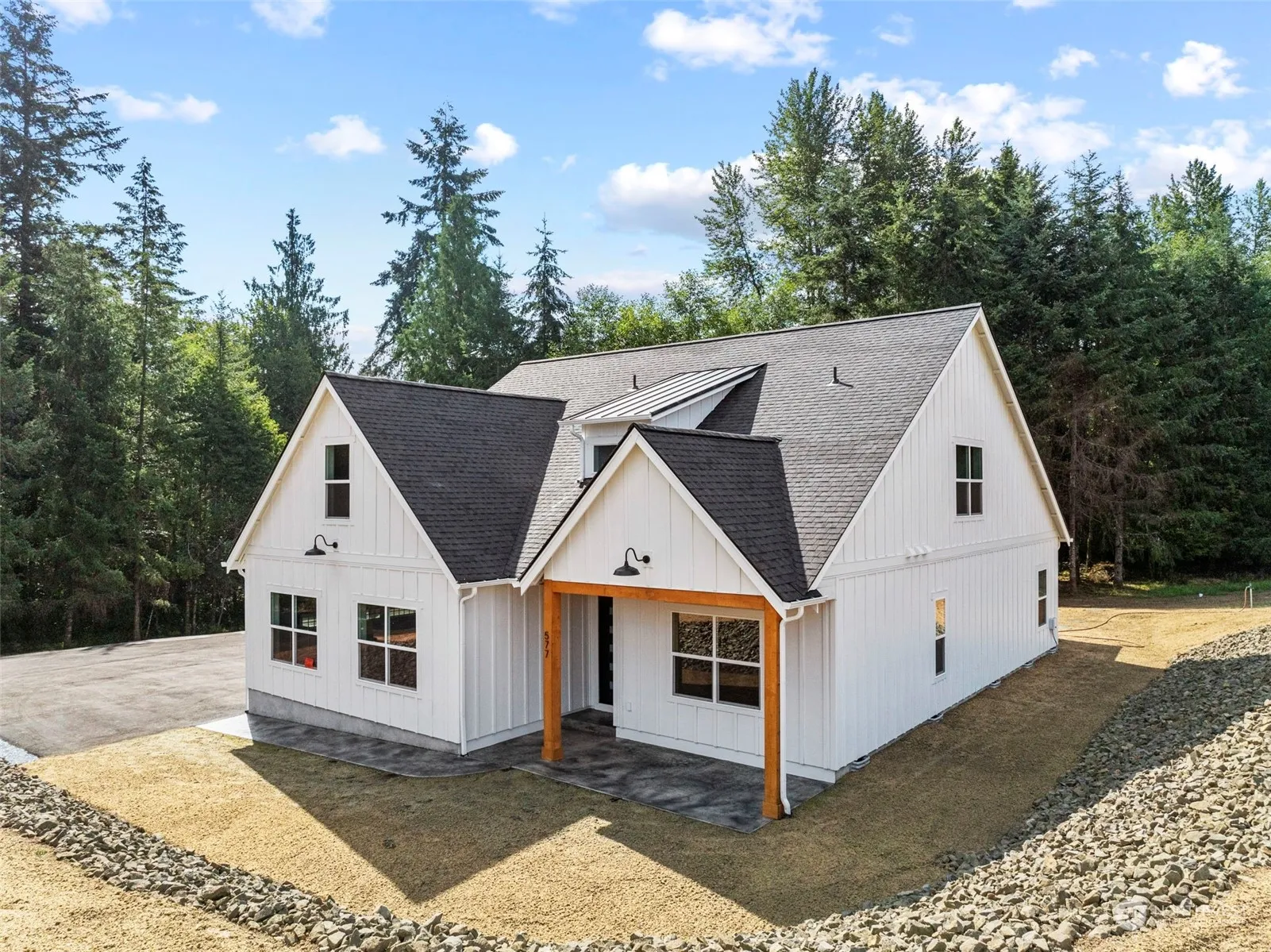 Brand New Construction! This modern farmhouse with custom elements throughout, sits on a 3-acre lot. The home features 4 spacious bedrooms and three full bathrooms. The first floor boasts elegant 9′ ceilings, while the kitchen and living areas are enhanced by soaring vaulted ceilings. Off the kitchen, you’ll find a well-appointed butler’s pantry. The main floor also includes two walk-in tile showers and a covered back entertaining area for outdoor gatherings. The kitchen is equipped with stainless steel appliances, and the property also features a large, finished two-car garage. Interior highlights include stylish luxury vinyl plank flooring, exquisite quartz countertops, and sleek modern flat-panel cabinetry throughout. Recent appraisal!
