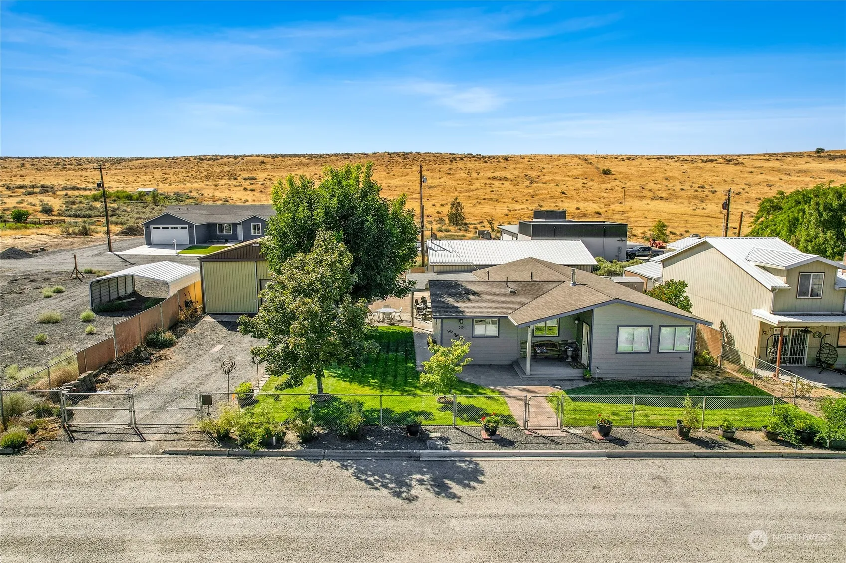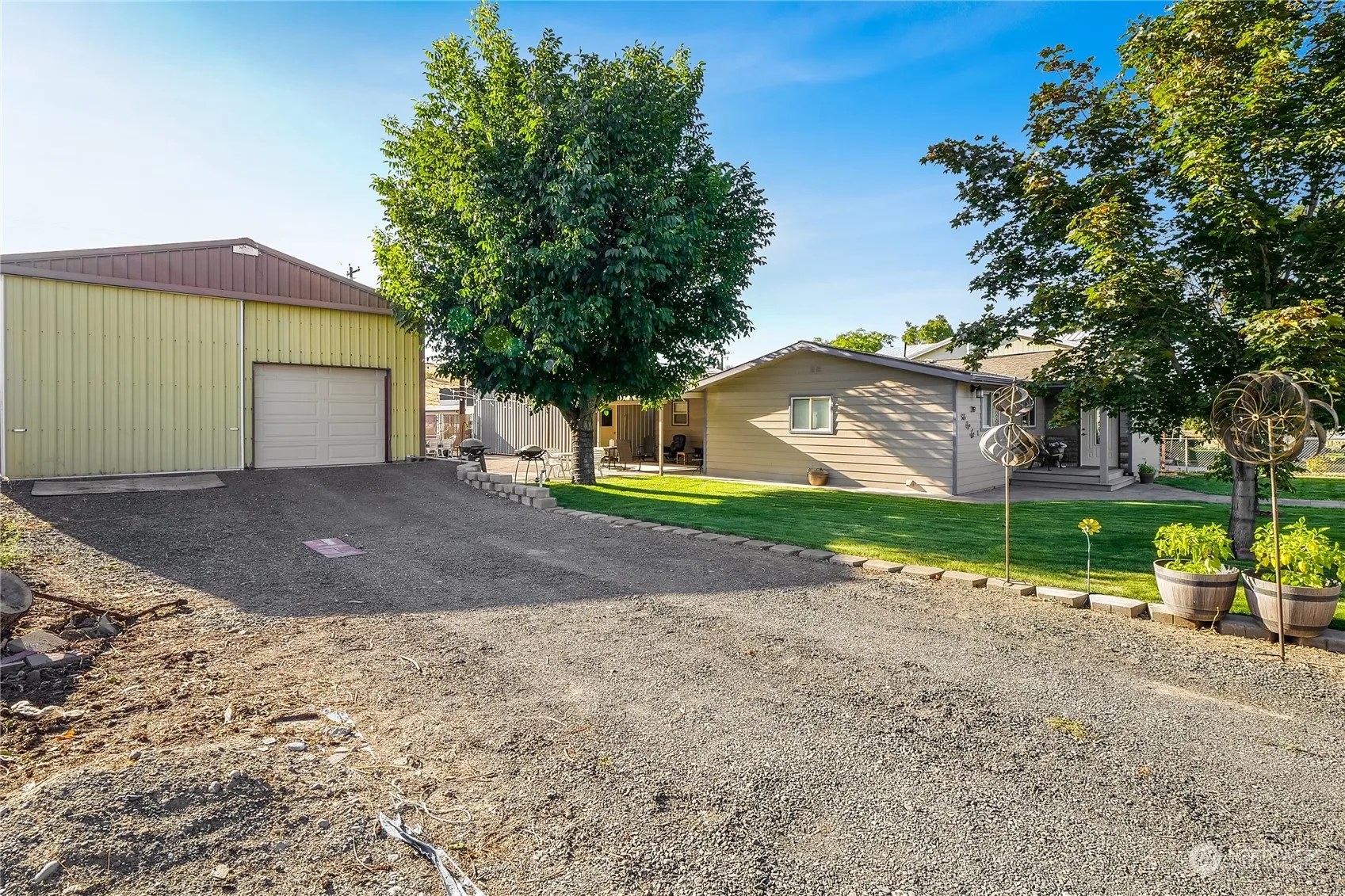 This charming 3-bedroom, 1.5-bath home is a chef’s delight! A fully remodeled kitchen equipped with top-of-the-line appliances has an abundance of counter space, large central island, inset spaces for the refrigerator and microwave, and plenty of room to move around comfortably. The bedrooms have built-in closets and a walk-in closet. The living room with a gas fireplace is designed with photo-quality display hangers and adjustable lighting, perfectly complemented by a dining area with a picturesque lakeview window. It also includes a double-door shop, an impressive 44′ long, with room for a large RV, another vehicle and storage! The XL 2-car garage has many workbenches, lighting and compressor capabilities all on a 100’x100′ double lot.