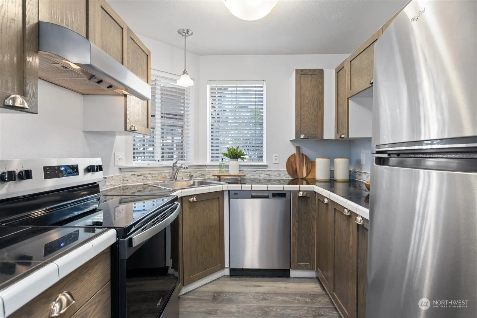 Welcome to The Hamptons in Mukilteo! Nestled amongst tree-lined streets with sidewalks & Harbour Pointe Golf Club, you will find a beautiful 3-bed/ 2-bath ground floor end unit. Recently updated with new LVP floors, trim, doors, lighting & paint. The kitchen shines with a new fridge, stove/oven & refaced cabinets. All appliances + window coverings stay. After your evening walk to catch the sunset over Whidbey Island or a quick round of golf, you can cozy up by the wood burning fireplace. Situated near Boeing + Paine Field, you’ll enjoy easy access to shopping, dining & recreation. Nearby beaches & ferries make for ideal weekend adventures. 2 parking spaces, seasonal outdoor pool + clubhouse. You will feel like you can get away, every day.
