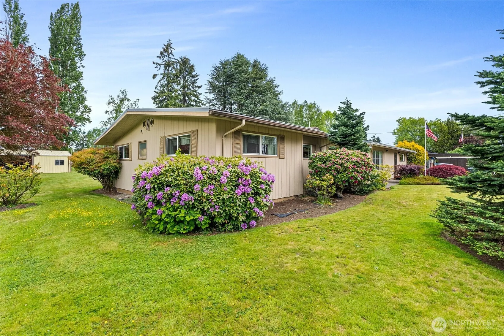 Spacious 5-bedroom, 1 ¾ bath mid-century rambler on .81 acre lot. Imagine evenings by the fireplace in the generous living room, or entertain with ease in the huge rec room with wood lined vaulted ceilings. Step outside to a covered back porch with built in benches overlooking a beautiful landscape, complete with a patio, garden area, canning shed, and a shop for hobbies, storage, or workspace. A sprinkler system keeps the grounds thriving, while the well and septic offer independence. Inside, you’ll find original hardwood floors in the bedrooms, durable vinyl windows, and thoughtful updates throughout, including a newer furnace, hot water heater, and new electrical panel. All within city reach! $10K remodel credit with Arvids Interiors.