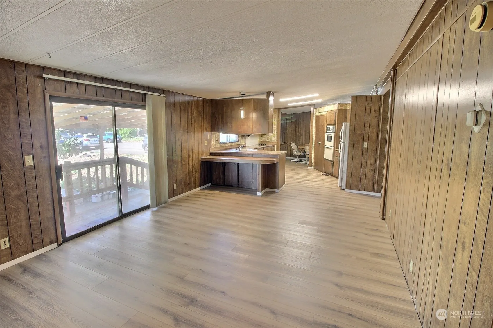Come and see this cozy, 3 bed, 2 bath manufactured home. When you step into this home, you are greeted by a spacious living room, with new laminate flooring throughout. Home flows nicely into the dining area and kitchen. The kitchen features a double wall oven, pantry, and plenty of cabinets for storage. The primary bedroom features an en suite bathroom with both a soaking tub and stand-up shower. This home features lots of windows which keep it feeling light and bright all day long.