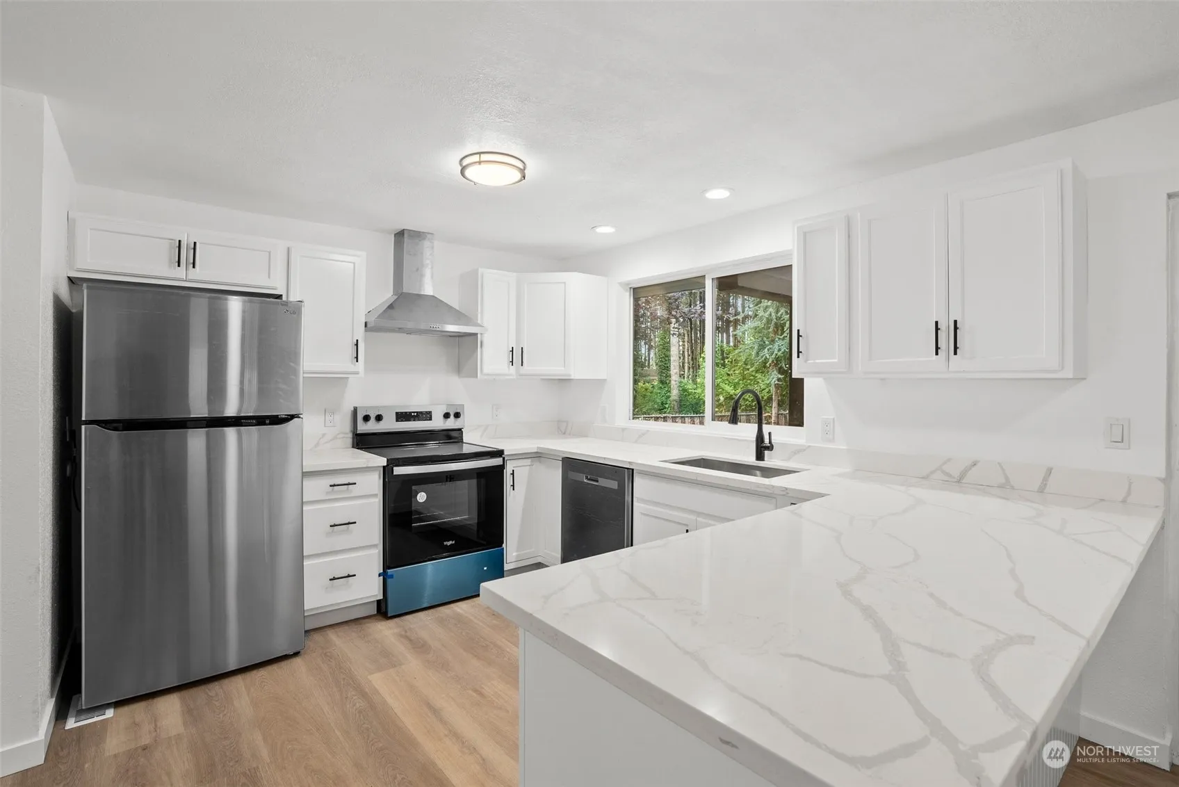Entertainers dream!! Beautifully updated 3 Bedroom 1.75 Bath home with 2 garages & an inground pool. Walk inside & fall in love with the open floor plan & designer finishes throughout. Updated kitchen comes with white cabinets, NEW quartz countertops & stainless-steel appliances. Primary bedroom comes with brand NEW private bathroom. Upgrades include NEW Tile shower surround & vanity. Entertain your guests outside with your huge inground pool & jacuzzi tub. Home sits on a large .39 acre lot with additional covered deck off slider. Plenty of room for all your toys with attached 520 Sqft 2 car garage & detached 720 Sqft 2 car garage. Come see today before it’s too late.