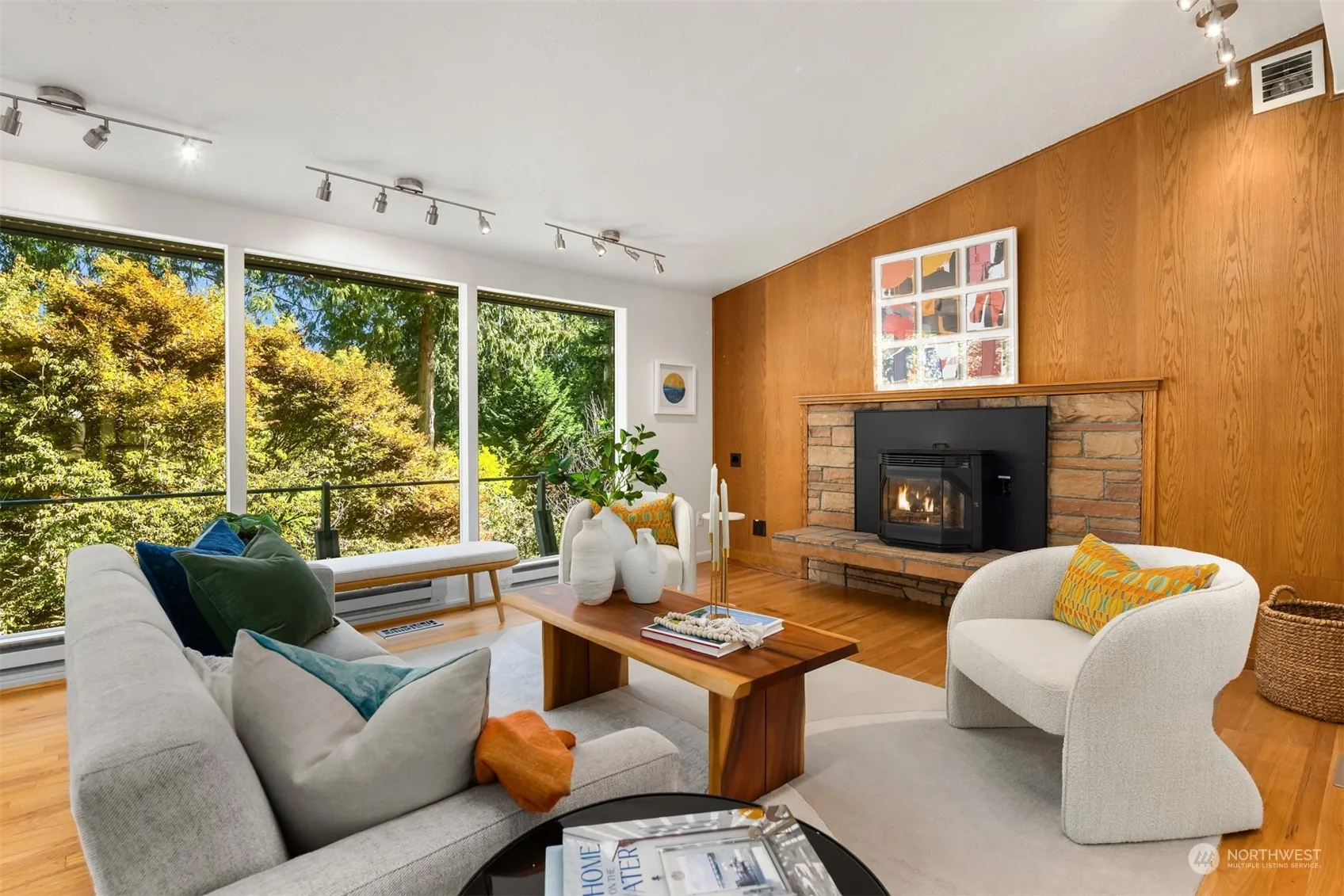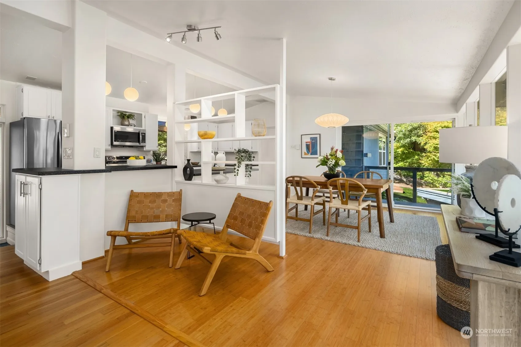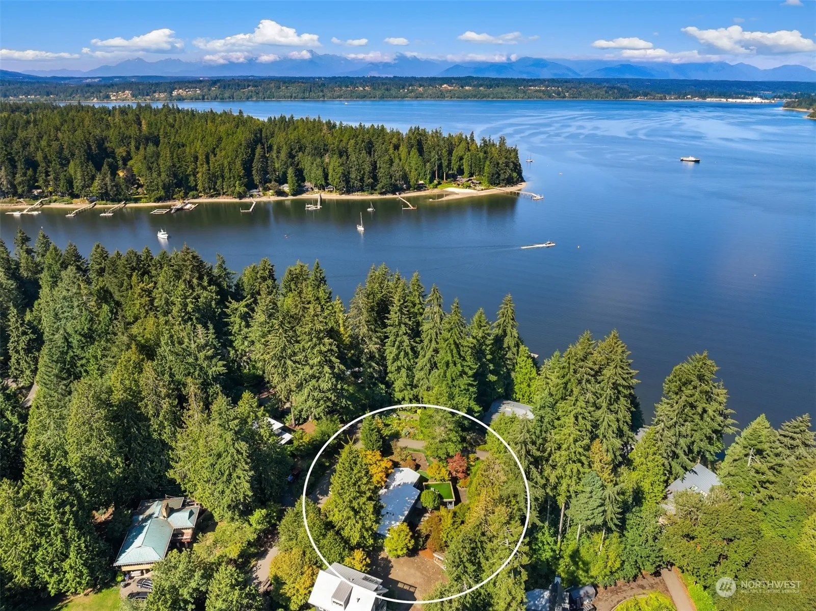 Nestled on a lush ½ acre lot, this classic midcentury home features stunning floor-to-ceiling windows, open floor plan & vaulted ceilings creating an airy, inviting atmosphere. The updated kitchen w/new appliances opens to a large dining area w/views of the yard & rooftop deck. Main floor includes 2 bdrms, full bth, & access to a versatile studio w/kitchen & ¾ bath. Lower daylight level boasts a generous primary bdrm w/deck, spacious rec rm w/cozy fireplace & extra space for office or workout area. The property also has a garden shed, multiple decks, & new septic system. Enjoy private access to Manzanita Bay Beach & exploring nearby Battle Point Park. Minutes from the ferry & DT vibrant shops & dining, this home is a true island oasis!