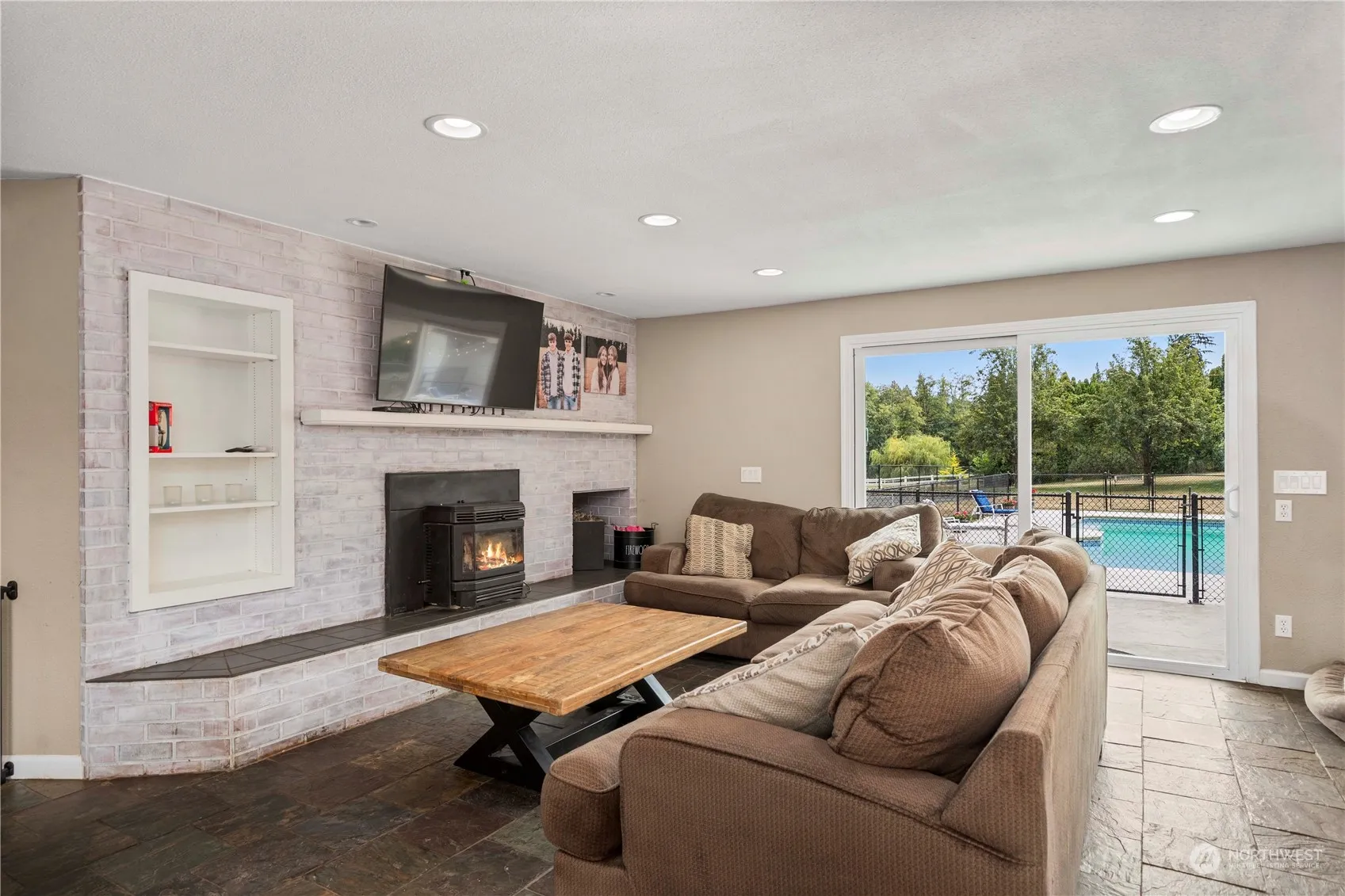 Welcome to your private Oasis shy of 5 acres with manicured grounds, fenced & cross-fenced pastures, stalls, an inground pool & sports court. Custom 4 bed 2.5 bath 4,124 sf. estate. Living area open to kitchen w/double ovens, large island & dining area. Granite countertops compliment the slate floors throughout. Fam room w/stone FP & vaulted ceilings look out to Mt. Rainier view through trees. The primary suite offers WIC & tile shower. Mudroom off of the 2-car garage. The lower level includes a bonus room, rec room, office & bomb shelter. Back yard w/huge stamped concrete patio wired for hot tub, private heated pool, pool house w/bar, sports court, 3 stalls & tack room. Heat pump & AC, wired for generator. RV pad with power & dump hook-up.