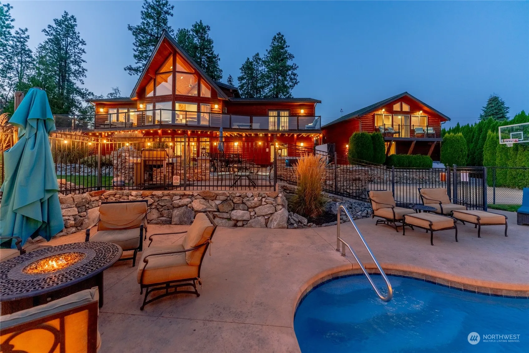 Stunning 4bd/4.5bth 4,164SF fully furnished turn-key home overlooking Lake Chelan w/ expansive outdoor living space complete w/ private pool, hot tub, basketball court, dining & lounge areas plus a detached carriage house w/ kitchen, bathroom & loft. The main home features hardwood floors, high ceilings, oversized windows, living room w/ stone fireplace, spacious entertainer’s kitchen w/ quartz countertops, a main level Primary suite w/ fireplace, spa-like bath & French doors leading to a lake view deck. Upper level bedroom/bunk room and lower level w/ 2 additional bedrooms, bath & bonus living room/media room w/ dining area & a 2nd kitchen that opens onto the lower patio. Close to downtown Manson w/ its many wineries, shops & restaurants.