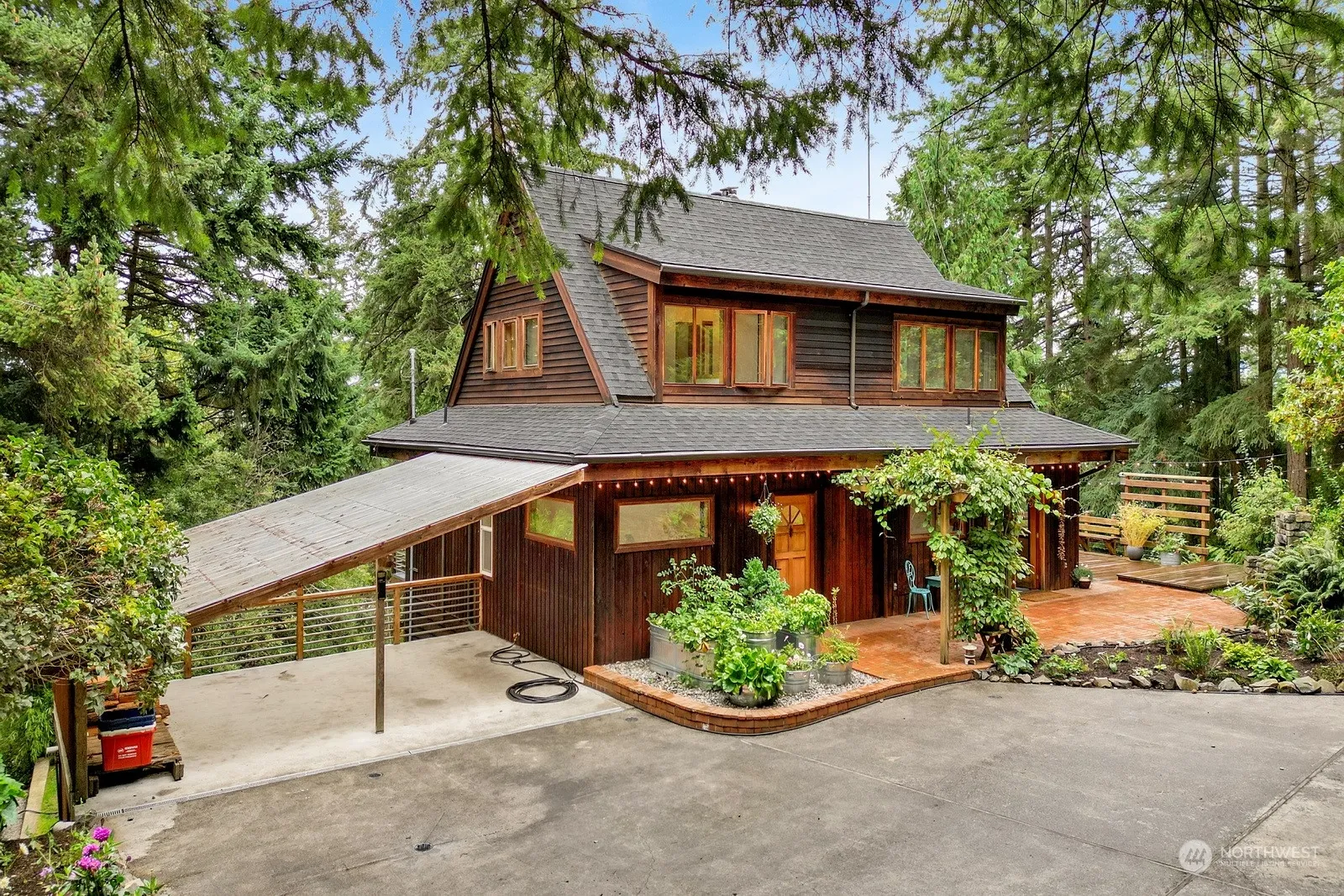Short Term Rentals allowed! Embrace island living in this charming 3-bed,2-bath lodge style home. The main level features a cozy wood burning fireplace + office space. A separate studio with .75 bath provides an ideal space for creative pursuits, or guest accommodations. Great indoor/outdoor flow with large, private deck, ample gardening space & two functional sheds offering addl storage for tools/toys. Upgrades:new roof,new int paint,ext stain,converted energy source to propane & wired for generator. Set on 3 secluded lots, this home promises a retreat away from the hustle & bustle. Community amenities: saltwater boat launch&private beach access. Rate is locked at 5.625%(APR 5.854%) includes buy down. Ask your broker for more information.