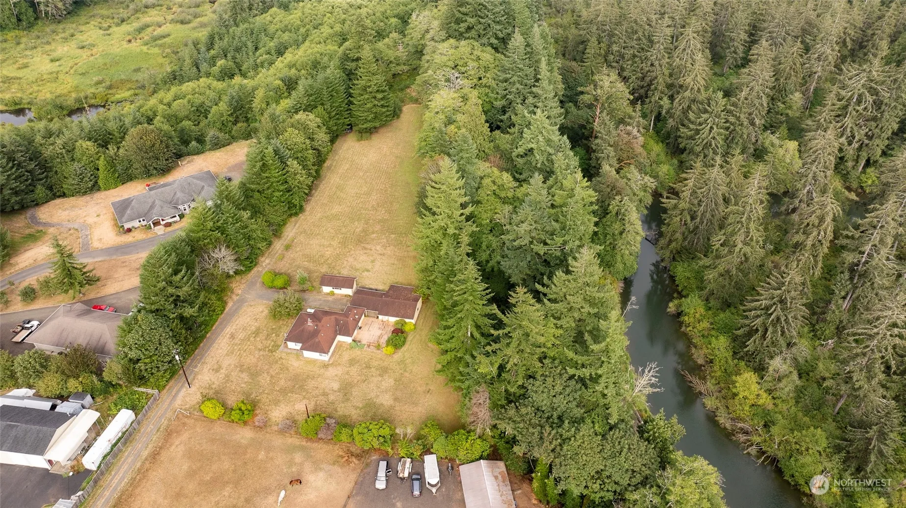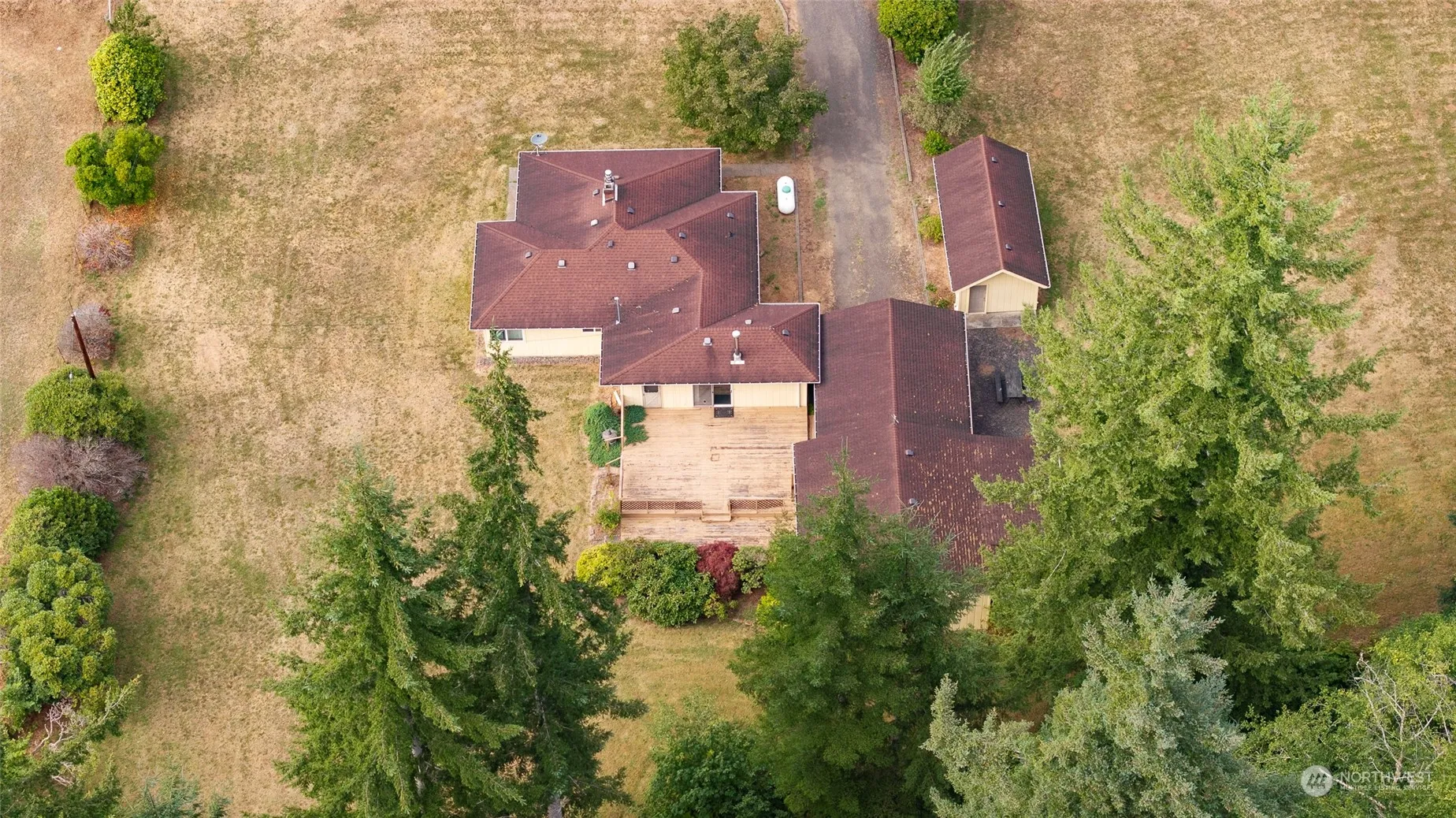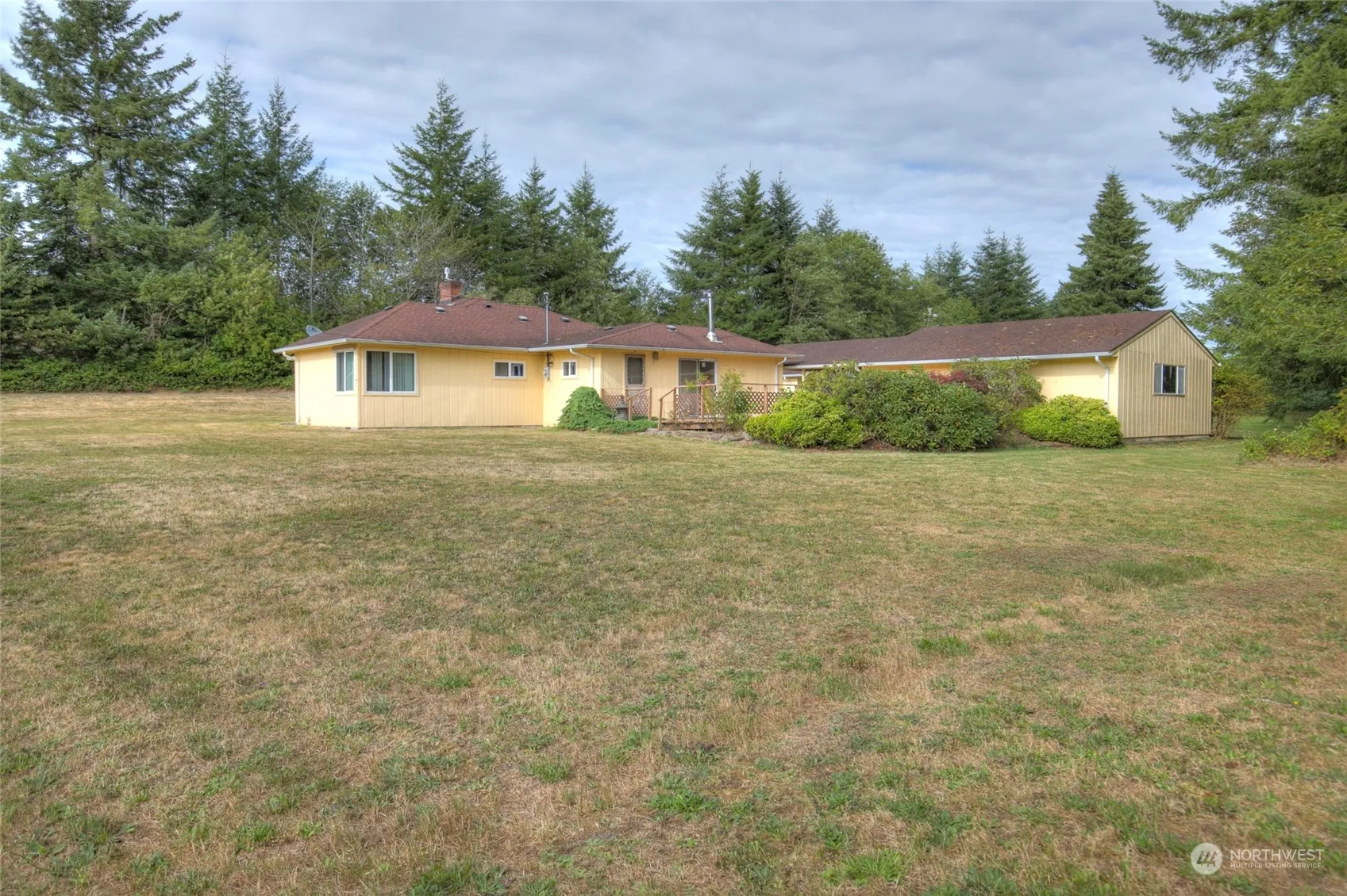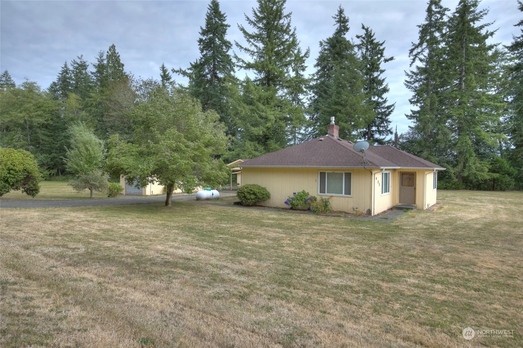 Rare 4+ acre property with 2 bedrooms and 1 bath located in Central Park. This home features Corian countertop in the kitchen, spacious living room with propane fireplace, full hallway bath with tile flooring, and family room with sliding door to a deck with more than 500 SF. A detached carport and garage provide 1,100 SF of covered parking. RV parking is also available. The house sits off Blaine Rd and provides a very private setting. This property is an Estate and is being sold “as-is”.