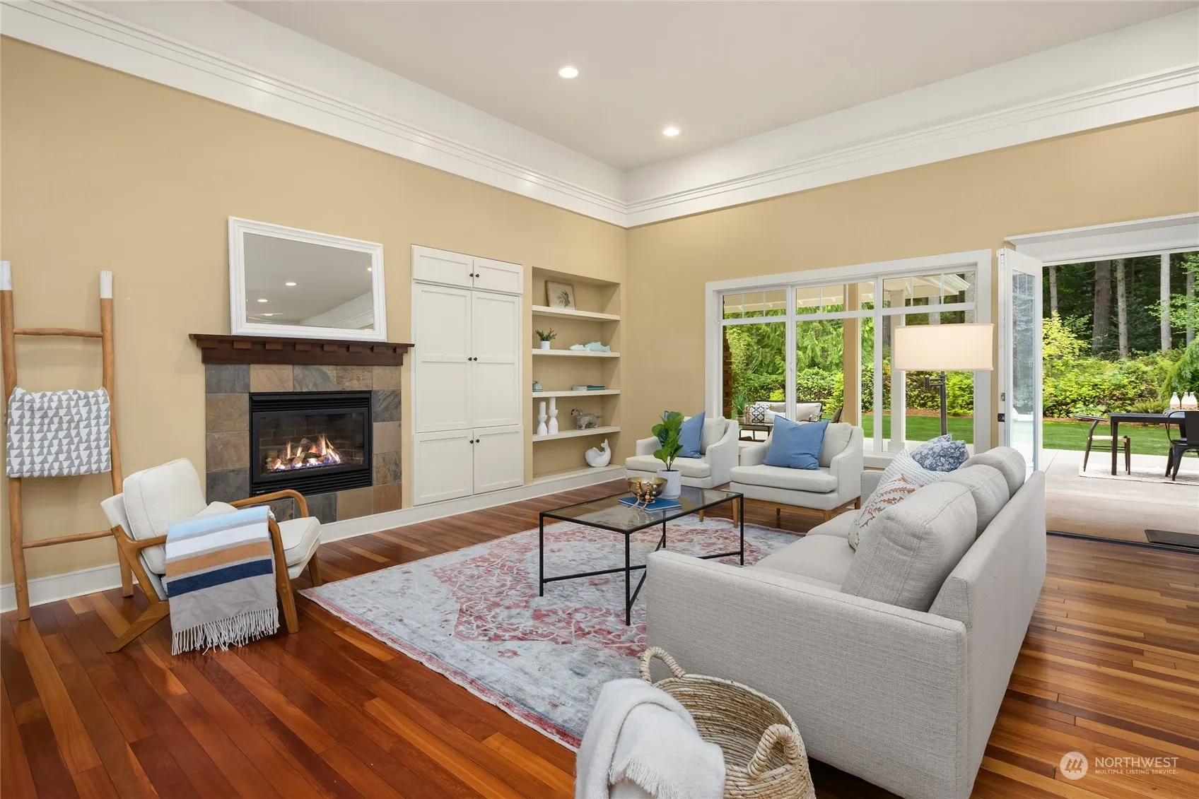 This is the home you’ve been waiting for…smart, sophisticated and one-level on 2.5 private, park-like acres. This thoughtfully designed home basks in western exposure for year-round light and features soaring ceilings in the great room/kitchen. The primary suite is a wing unto itself with French doors to a covered patio. Two additional bedrooms in the main house plus a guest suite and additional studio. The outdoor fireplace overlooks the peaceful yard and invites indoor/outdoor living. Generous parking on the paved circular drive accented by established landscaping and a soothing water feature. Relax and enjoy this meticulously maintained home close to desirable schools, Rolling Bay and all the parks and trails Bainbridge has to offer.