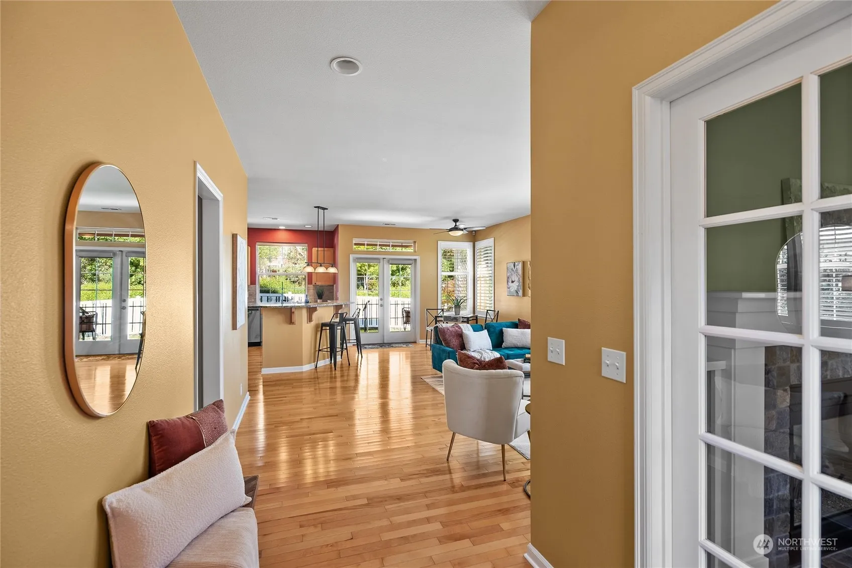 This desirable, craftsman-style, Poulsbo Place Div. 1 rambler has been meticulously maintained. The smart floor plan features a home office with quality built-ins, a two-way gas hearth & a spacious great room that encompasses the living room, dining area & kitchen. Enjoy the ease of one-story living with privacy & a convenient location so close to downtown restaurants, shopping, bakeries, & marina. This gem boasts lots of upgrades; granite counters, SS appliances, a beautiful walk-in shower, & lovely yard with mature landscaping, tucked away behind the greenbelt. This peach is ideal for commuting to both ferries & an easy stroll to town for coffee. Enjoy the picture-perfect back patio, or covered front porch & the serenity on Sugar Maple.