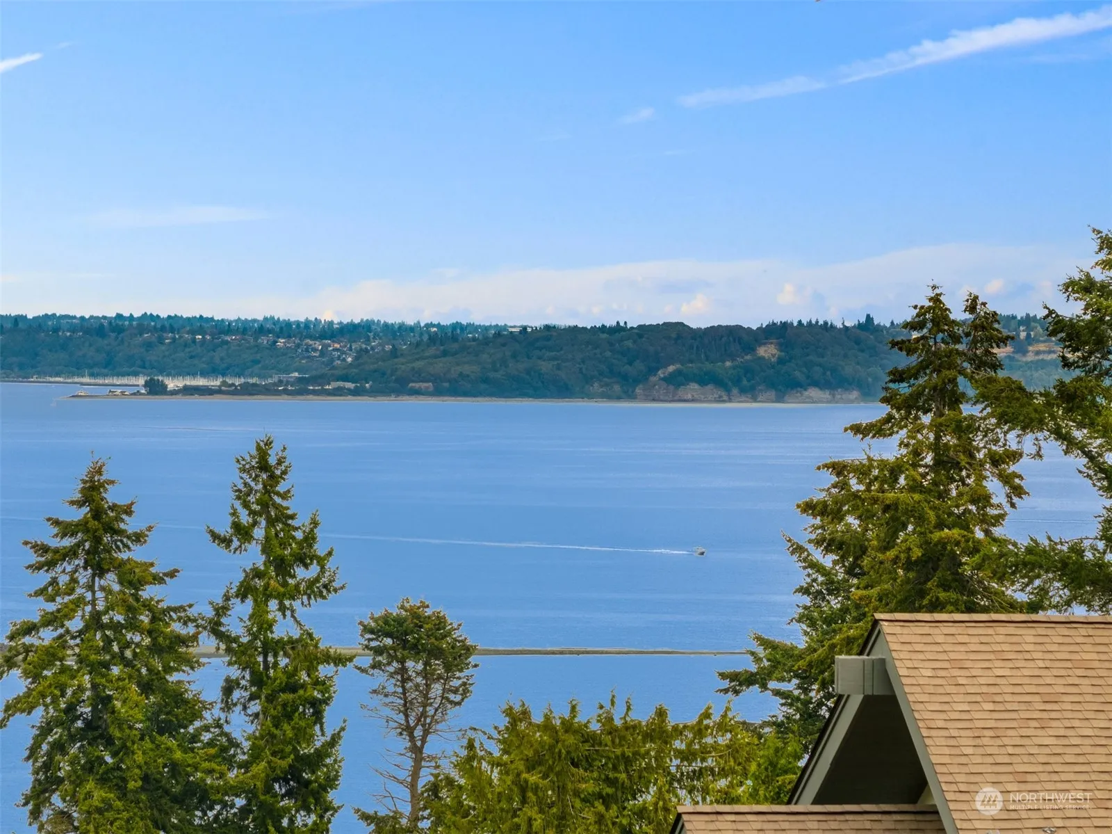 Watch ferries glide by from this stunning remodeled home with views of Puget Sound and Eagle Harbor. Neutral color palette combined with well-proportioned rooms create a tranquil and welcoming ambiance. The huge gourmet kitchen is the heart of the home, with high-end appliances, large marble work surfaces and ample storage. The open floor plan with light oak hardwood floors and abundant windows let natural light stream in. Most every room in the home enjoys water views, even the lower level. The primary bedroom and marble spa-like bath are located on the main floor. The lower level has a large recreation room, 2nd bedroom, home gym and office. Great water views. Home is equipped with a whole house auto generator and electric car charger.