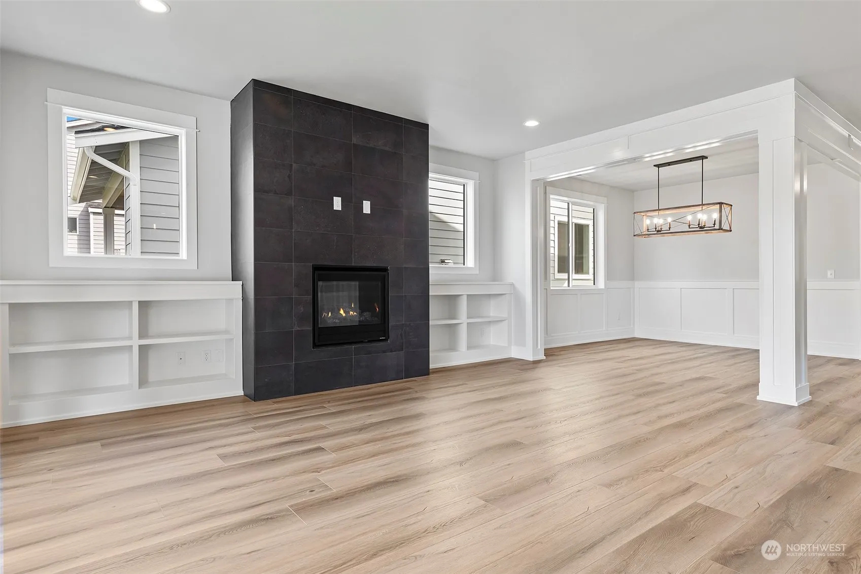 HOME IS MOVE IN READY! Introducing this stunning new construction by Azure NW w/modern luxury with timeless features, offering an unparalleled living experience. The kitchen is a chef’s delight, boasting a large island, quartz counters, full-height tile backsplash, appliances including a pot filler and a side by side fridge, walk-in pantry ensures ample storage. The great room features a tile surround gas fireplace with flanked built ins. Enjoy year round comfort with covered back deck w/ fireplace. Lower level includes bedroom, living space w/kitchenette. Huge primary suite w/vaulted ceilings & double doors to attached 5pc bath w/dual vanities, freestanding tub & walk-in closet.