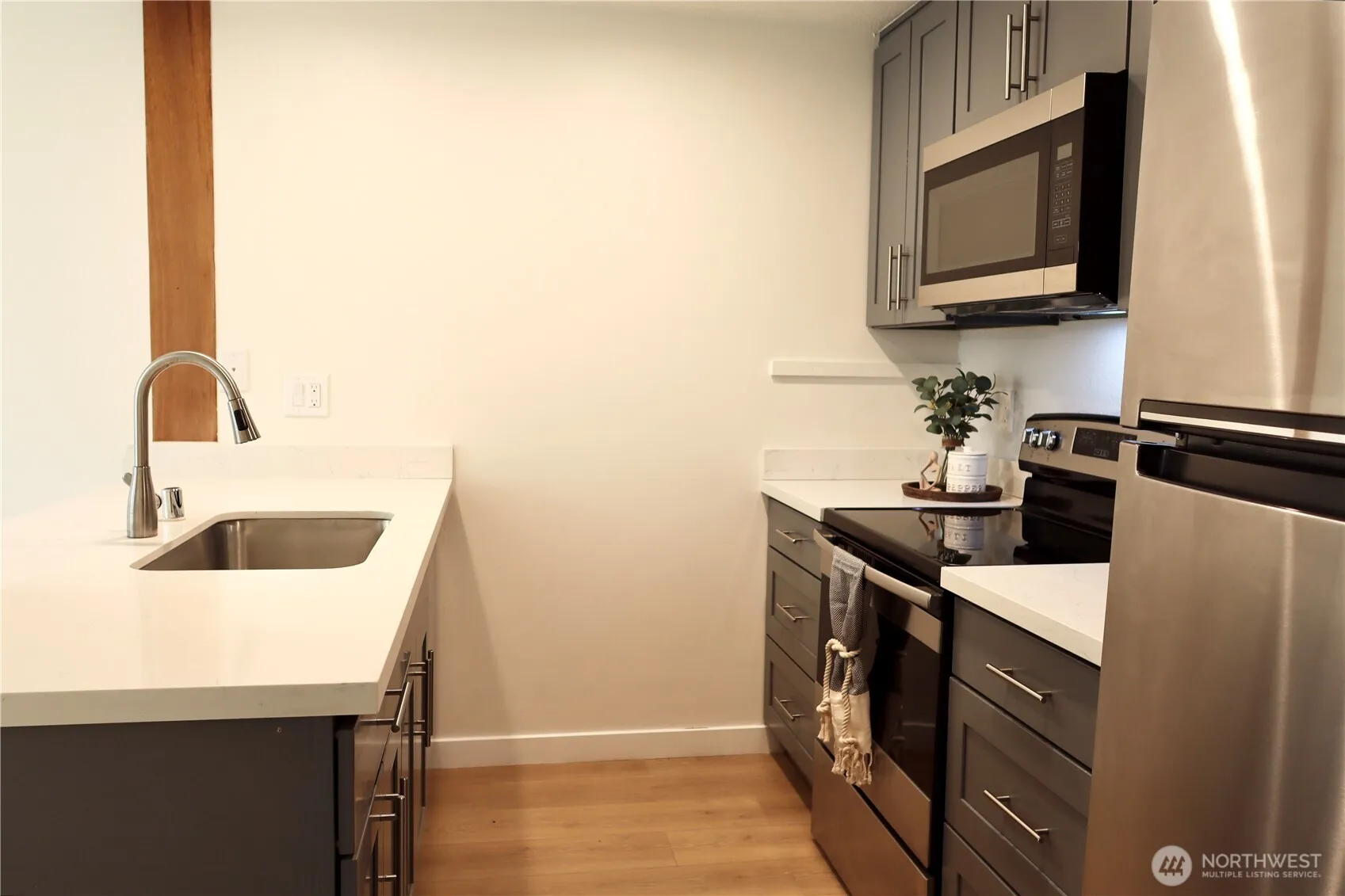 SCREAMIN’ DEAL! This pet & investor-friendly condo is found in a secluded enclave surrounded by walking trails & lush greenery. This updated 2-bed blends comfort with style. Fresh paint, new carpet, & sleek floors set a warm, modern tone. The updated kitchen boasts beautiful cabinets, slab counters, undermount sink, & SS appliances, while remaining open for entertaining & enjoying. For a private, serene feel, take in peaceful territorial views from the dining room’s garden window or the spacious balcony—or cozy up by the wood-burning fireplace on a winter day. With in-unit laundry, clubhouse access, water/sewer/garbage included, 1 reserved covered parking + an additional parking pass, this home offers easy living in a welcoming community.