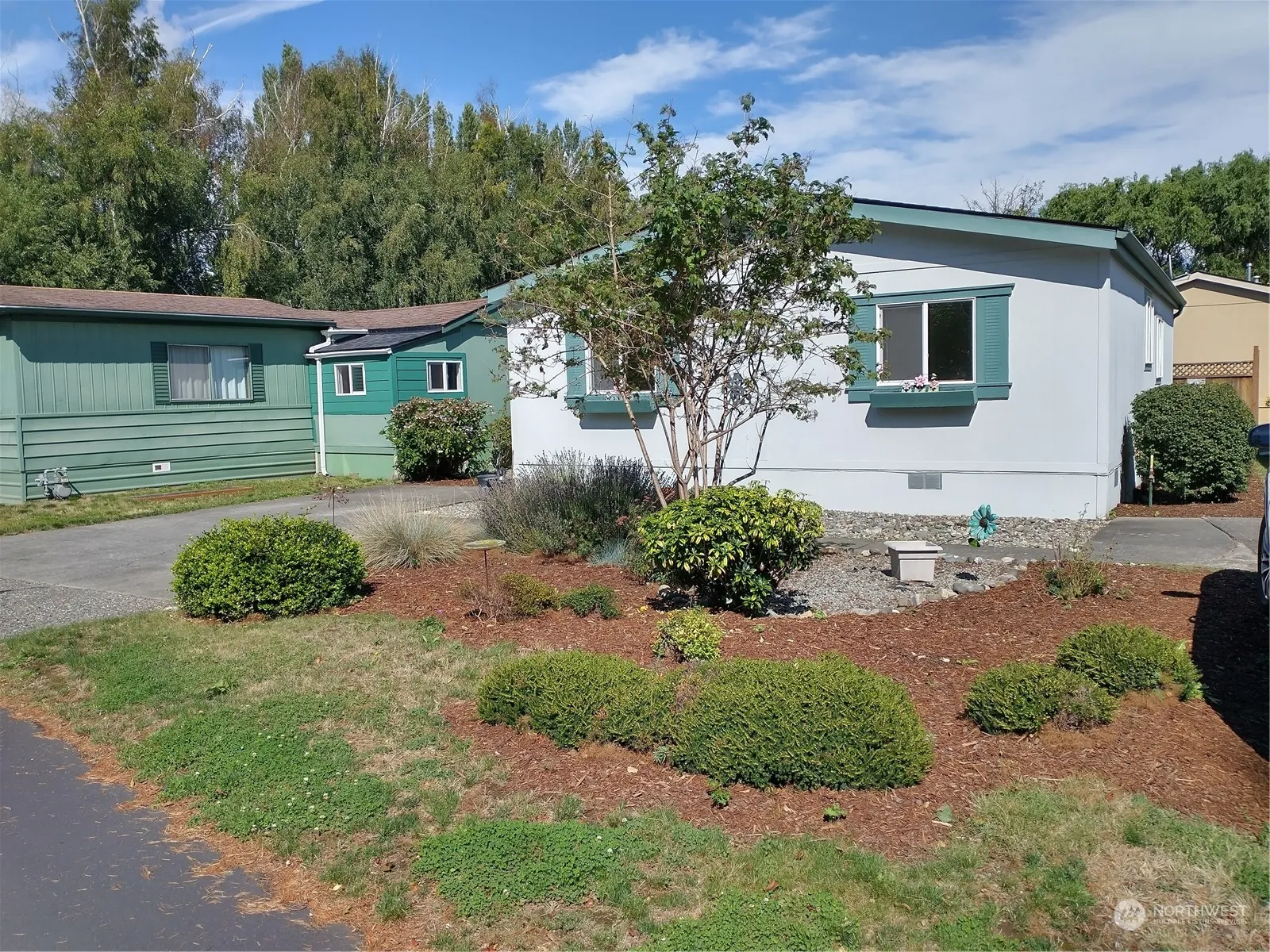 Affordability in Ferndale. Well maintained home in nice park setting close to schools and shopping. Great open floor plan with spacious living room and kitchen. 2 storage sheds in back yard. Covered front porch. Primary ensuite on one side of living room and other 2 bedrooms and bath on the other provides ample privacy. Move in ready