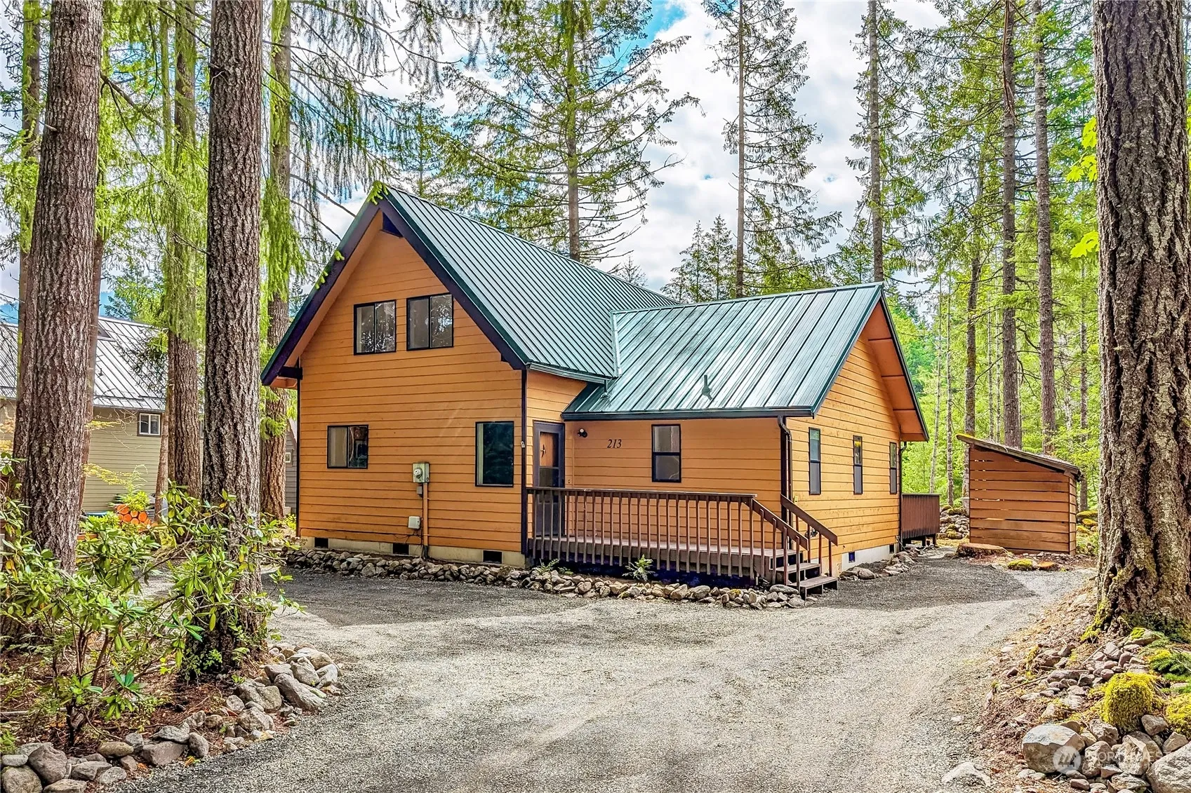 Gorgeous cedar cabin on Butter Creek! Fully renovated 2 bedroom 2 bath Northwest getaway with fresh paint inside and out, spotless stainless appliances, a bath off the loft primary bedroom, and new flooring throughout! Nothing could be easier … move in and enjoy the upcoming ski season with gatherings on the deck. Listen to the creek! Perfect to share with your friends or to add a rental to your investment portfolio. High Valley community amenities include swimming pools, clubhouse and 9-hole golf course. Less than 10 minutes to downtown Packwood stores, restaurants and breweries; 30 minutes to White Pass Ski Area or the Stevens Canyon entrance to Mount Rainier National Park.