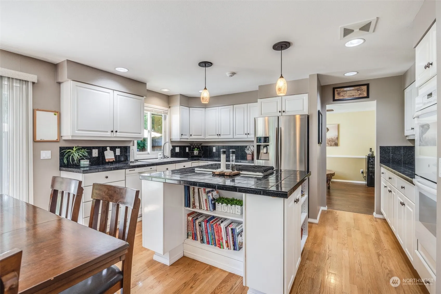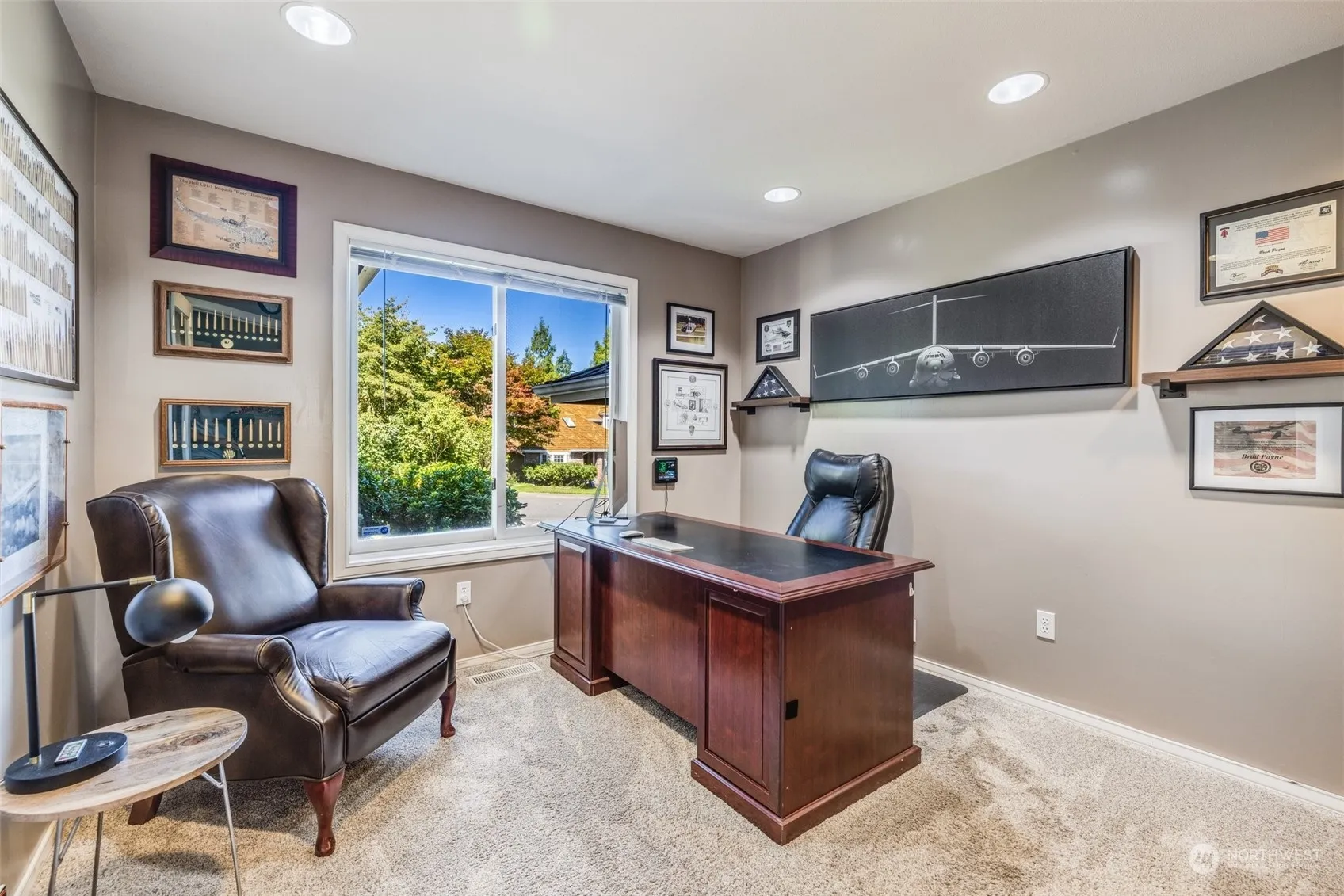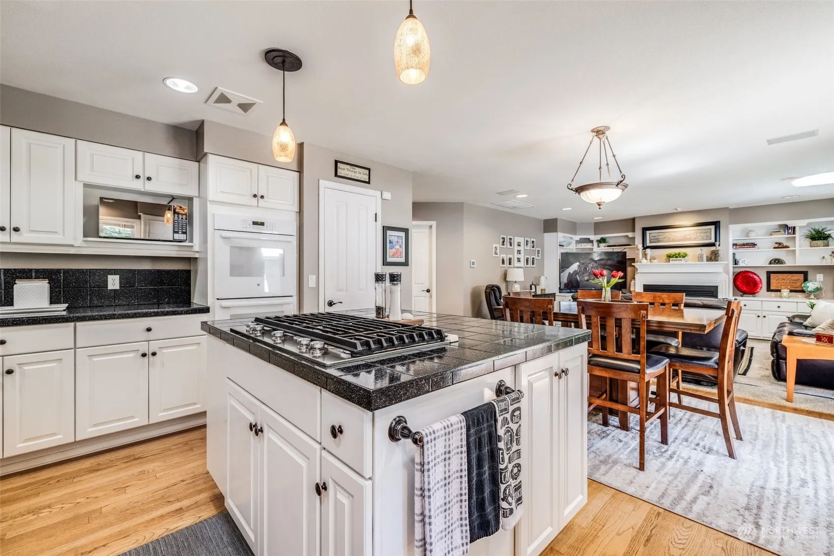 A custom built home in the desirable Westhampton neighborhood of University Place w/ tandem 3 car garage. Open living w/ vaulted ceilings and large dining area on main level; main level bedroom currently used as office. Custom built-in shelving and cabinetry throughout and the spacious primary suite boasts a large built-in seating bench under the large window overlooking the fully landscaped backyard. Beautifully manicured backyard w/ lots of space for entertaining w/ large patio, deck, fire pit and gas plumbed for a BBQ. The greenbelt also gives the backyard a feel of a weekend retreat with plenty of privacy for peaceful gatherings or just to hang out. Close to shopping, UP Town Center and Chambers Bay Golf. A must see to appreciate!!