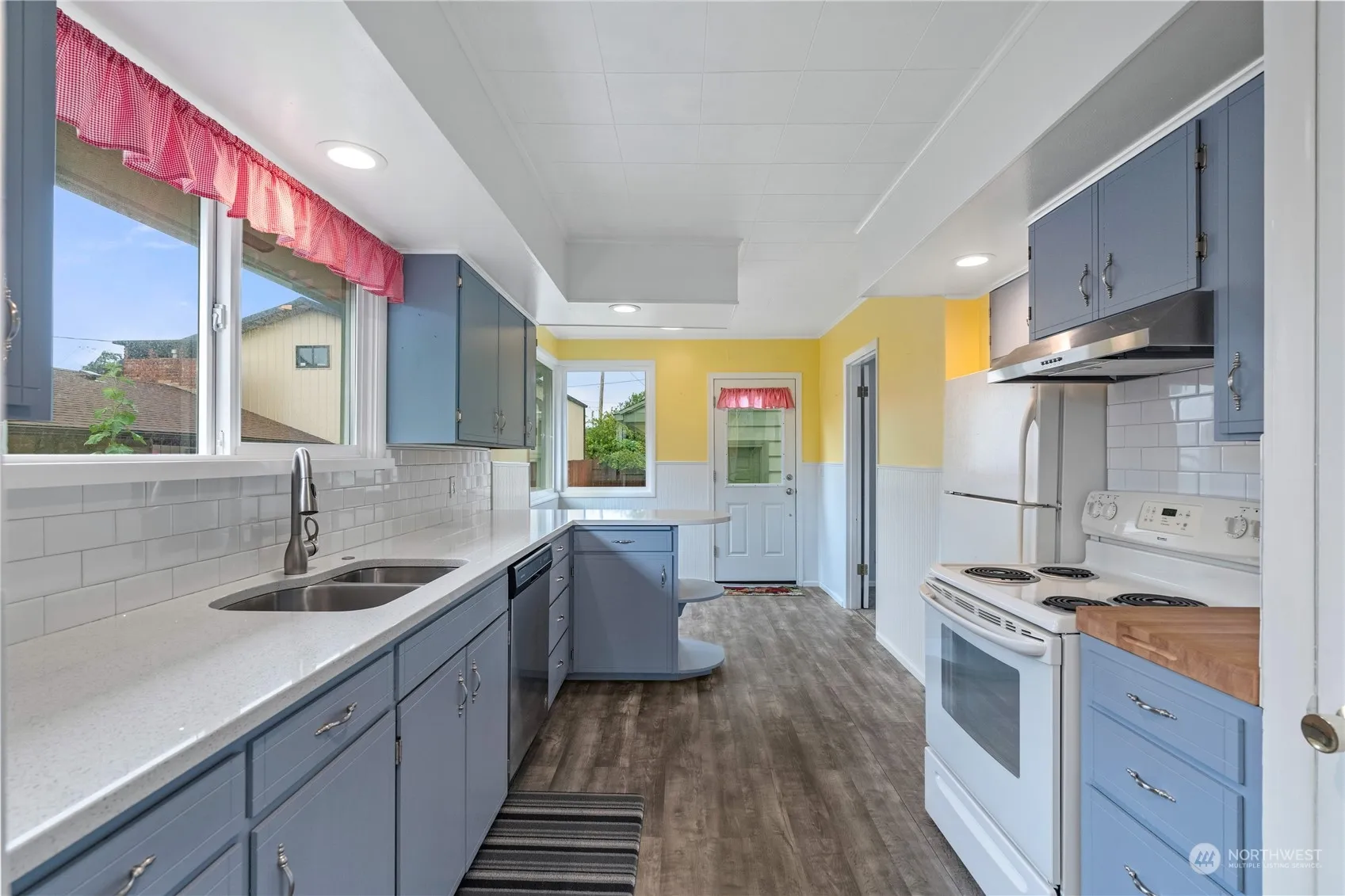 Just listed! This Aberdeen home is ready for you to move in. It features three bedrooms and a newly remodeled full bathroom. The kitchen, conveniently situated next to the living room, includes a stunning white subway tile backsplash, granite countertops, and newer appliances. Enjoy the cozy natural gas fireplace in the living room, perfect for efficient heating. A spacious private deck at the back of the house overlooks the beautifully landscaped yard. The utility room is in the detached garage, and there’s ample parking with a driveway off the alley and additional street parking. The property is partially fenced for extra privacy.