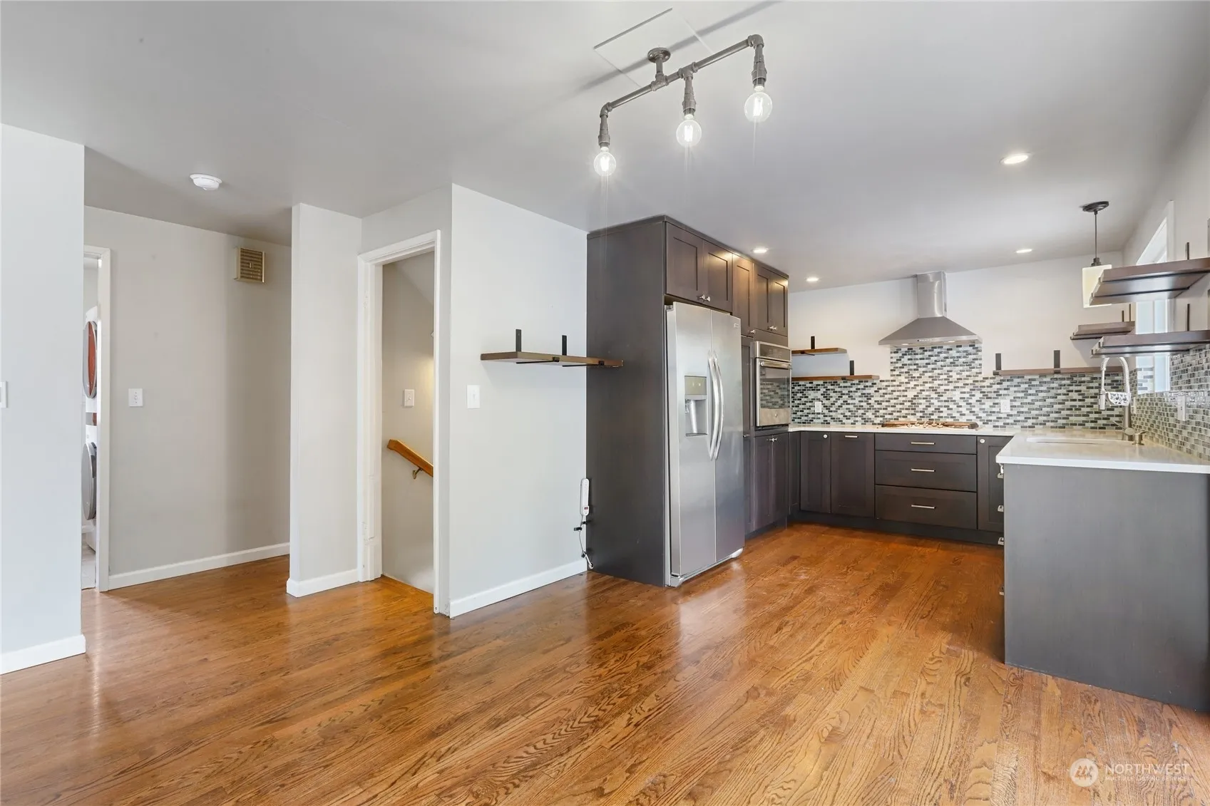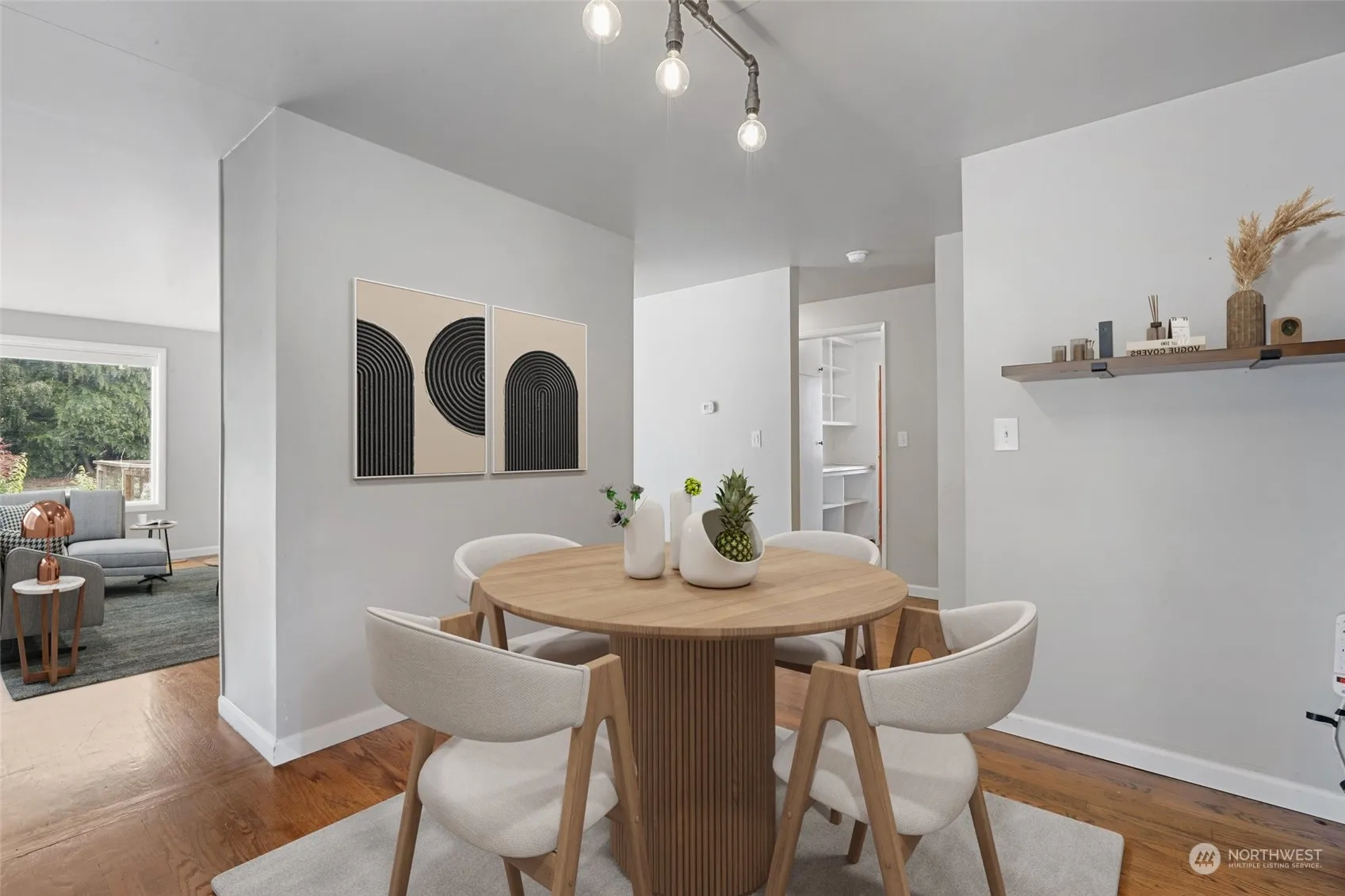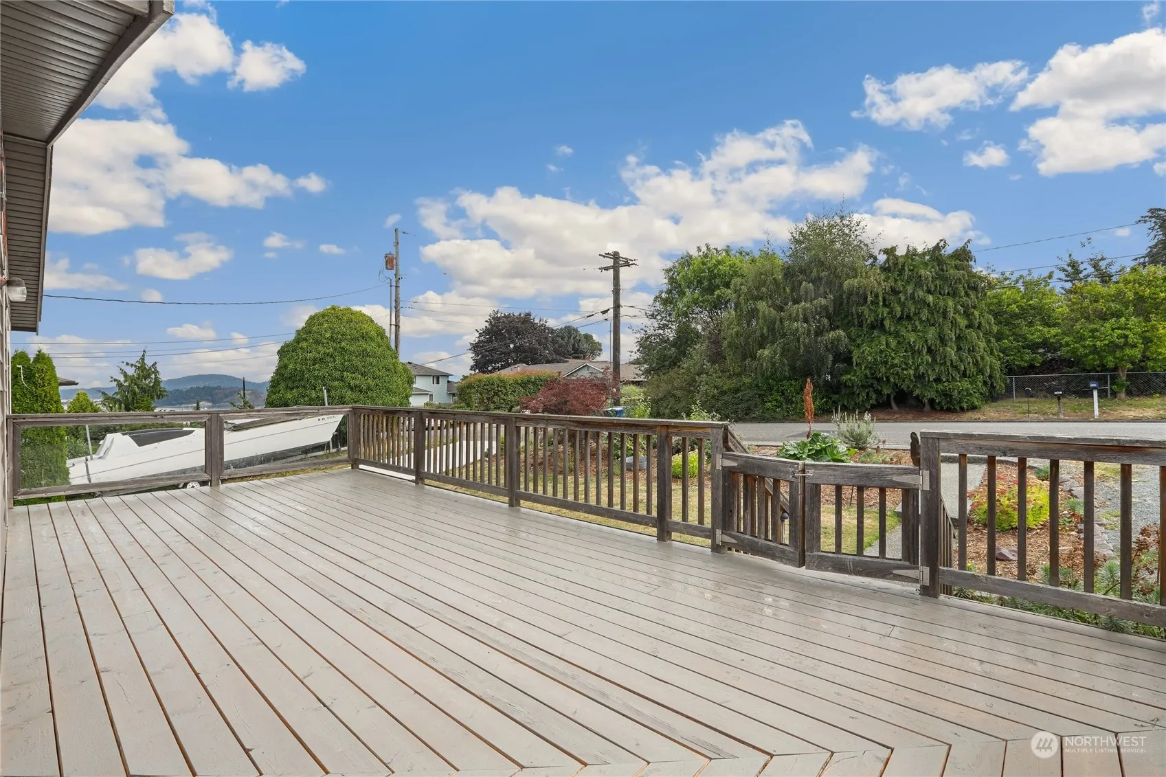 Welcome to this his 4-bedroom home offering water views from the front deck, making it a perfect spot to unwind and take in the beauty of nature. The living room, bathed in natural light from large windows, creates a welcoming atmosphere that flows into the kitchen with a cozy eating space. The main level features three comfortable bedrooms, a full bath, and a convenient laundry room. The spacious daylight basement offers a versatile family room, a ¾ bath, and an additional bedroom. The large fenced yard with a patio is perfect for outdoor relaxation or entertaining guests. With one garage parking space and ample additional parking, this home is both charming and practical. Don’t miss the opportunity to make it yours!