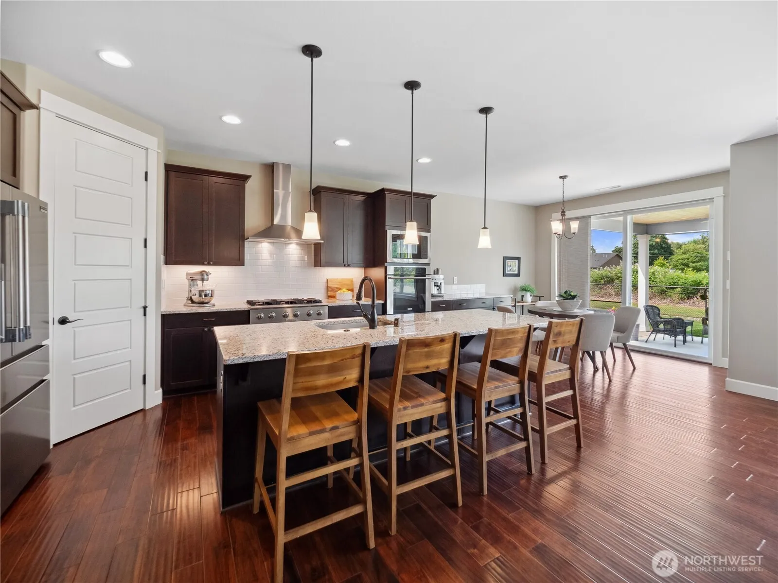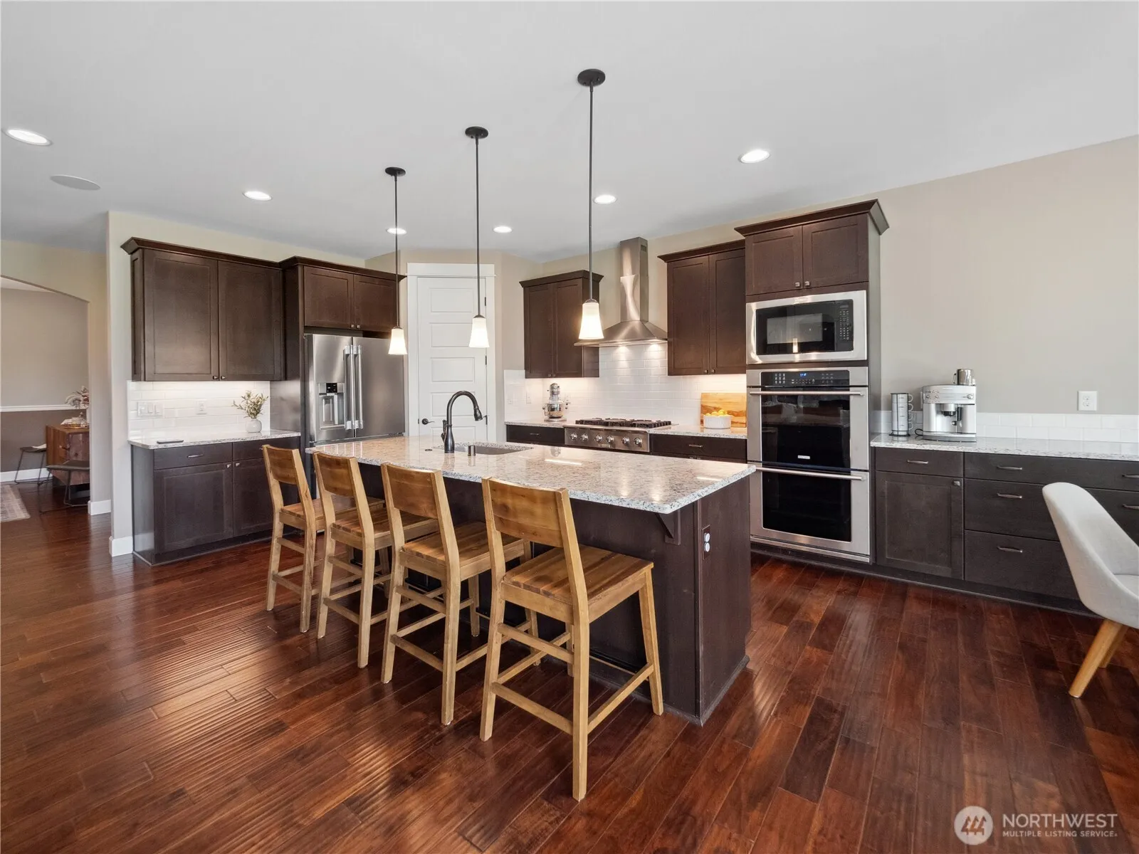 Mt. Rainier & foothill views at this 2018 Garrette Custom Homes resale on 2.82AC in city limits of Enumclaw w/ 4 beds, 2.75 baths, & 3,550SF. Open concept kitchen w/ granite CTs, SS appliances, double oven, adjacent dining room, coffee bar & island seating. Spacious living area w/ gas fireplace. Primary bedroom w/ private 5pc full bath includes WIC, custom no step shower, garden tub, & tile floors. Laundry/utility room w/ tile floors & mud sink. Bonus room up w/ 3/4 bath & 4th bedroom. 40’X60′ detached shop w/4-bays, 1 drive-thru, 12’X14′ doors (w/openers), separate utility meters, spray foam & batt insulation, 400kBTU gas heater, & 3/4 bathroom. Garden/tool shed, compost area + 10- 4’X8′ raised garden beds. 90% efficient gas furnace w/AC.