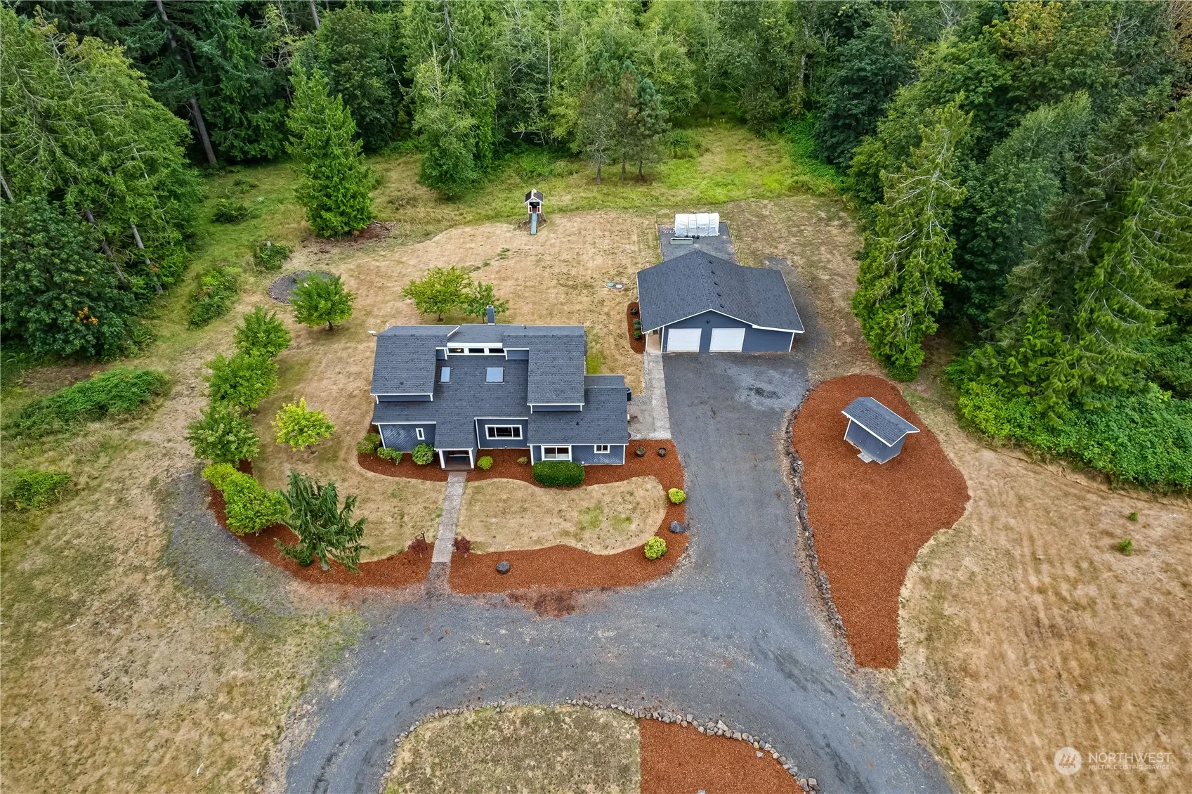 This gorgeous home sits on 4.85 acres located only 5 miles off the freeway with easy access to downtown Chehalis and shopping. This unique home features vaulted wood planked ceiling, large windows, a wood burning stove in the living room with an open loft above. Primary bedroom is on main floor with en suite, walk in closet and private deck. Built in central vac system, heat pump, wired for gen. 2 bedrooms upstairs have potential of being 4 rooms, worth a look if you are needing more than 3 bedrooms. Large detached garage w/2 separate rooms (possible ADU), covered back patio off the kitchen, fruit trees, fire pit area, treehouse, trails through the woods. All furniture negotiable, buy fully furnished! This place is worth the look!!!