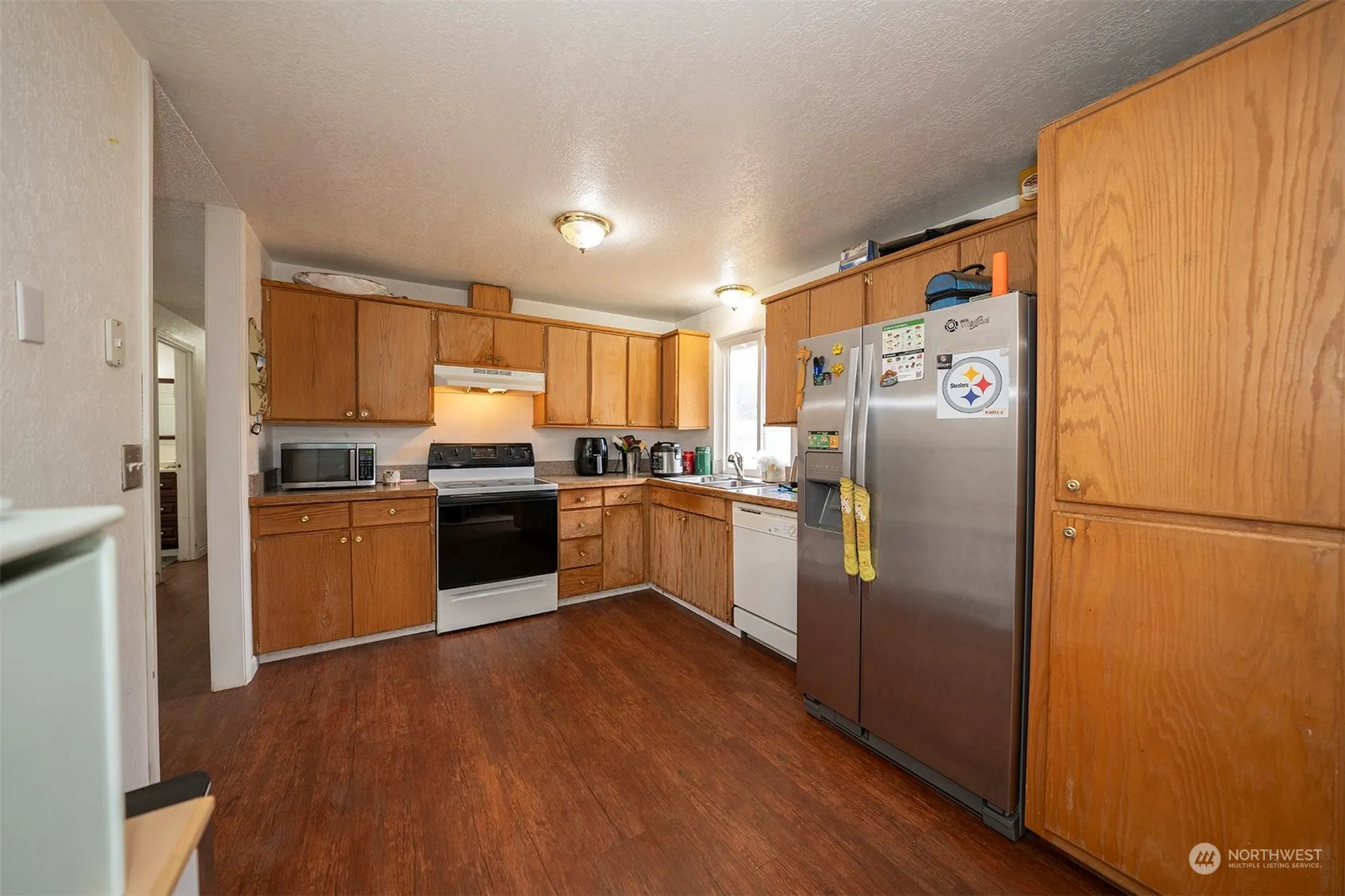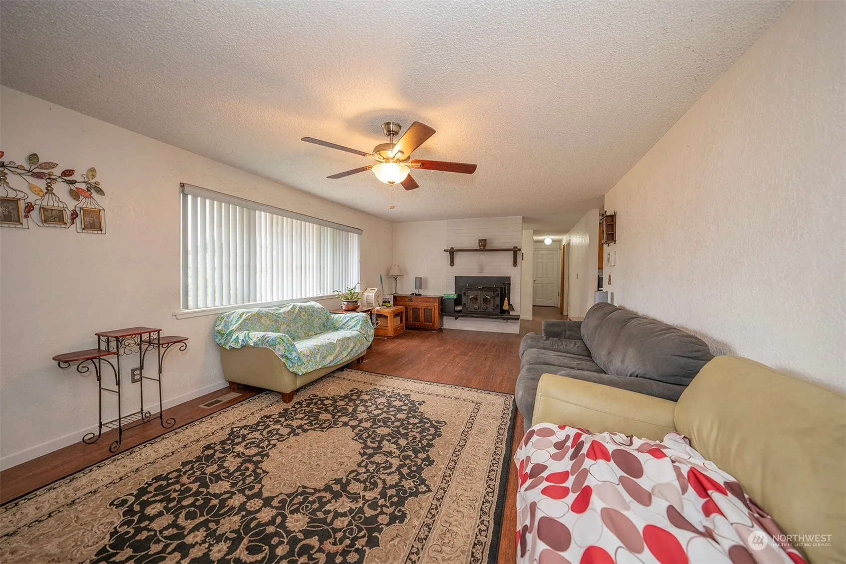 Discover this charming 3 bedroom, 1.75 bath, 1 story home nestled on a large 10,135 sqft/0.23 acre lot in a peaceful cul-de-sac. This property offers a large family room with a fireplace insert, perfect for gatherings and relaxation. The kitchen features ample cabinet space and is open to the dining room. The primary suite includes two closets and an ADA-compliant ensuite bath designed for comfort and accessibility. Enjoy outdoor living with a fully fenced backyard with garden shed, as well as a fully fenced front yard. The home also boasts a 2 car garage and an oversized driveway, providing plenty of parking space. Close to schools, parks, and downtown shopping, with easy access to JBLM. No HOA. Don’t miss this Yelm gem!