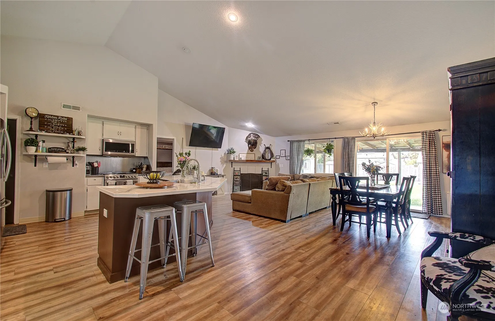 Come tour this lovely one level ranch home in Golden Hills Estates, on almost a quarter acre, w/ 4 bedroom, 2 full bath and 1924 sq feet. Enjoy relaxing in the back yard under the oversized covered patio, several raised garden beds, fire pit, 12×16 shop w/ 220 electrical outlet, fully fenced yard, storage shed, RV parking or boat storage. New laminate flooring, new exterior and interior paint, formal living rm, large island, open concept kitchen w/ vaulted ceilings, spacious family room, dining rm w/ gas fireplace. The primary bedroom features a ceiling fan, decorative shelving, walk in closet and en suite bathroom. This home is close to schools, shopping and all the great amenities Battle Ground has to offer. Call for a private tour today!