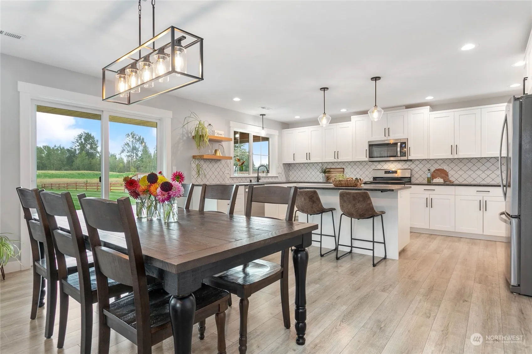 Absolutely stunning like-new rambler on huge .5 acre +/- parcel – great location on the edge of town, minutes from town amenities. Well-appointed details t/out this like-new home inc laminate wood flooring nearly everywhere in home, AC, vaulted ceilings, huge windows & more. Extra-large driveway w/RV parking pad & excellent curb appeal; covered front porch to enjoy year-round. Great floor plan w/vaulted living room open to large dining & HUGE kitchen. Incredible storage t/out including cabinets galore. Granite counters, full backsplash & ss appliances. Owner’s suite separate from other bdrms w/ensuite dual vanity bathroom & large walk-in closet. The ginormous backyard & peaceful views of the foothills complete this picturesque property!