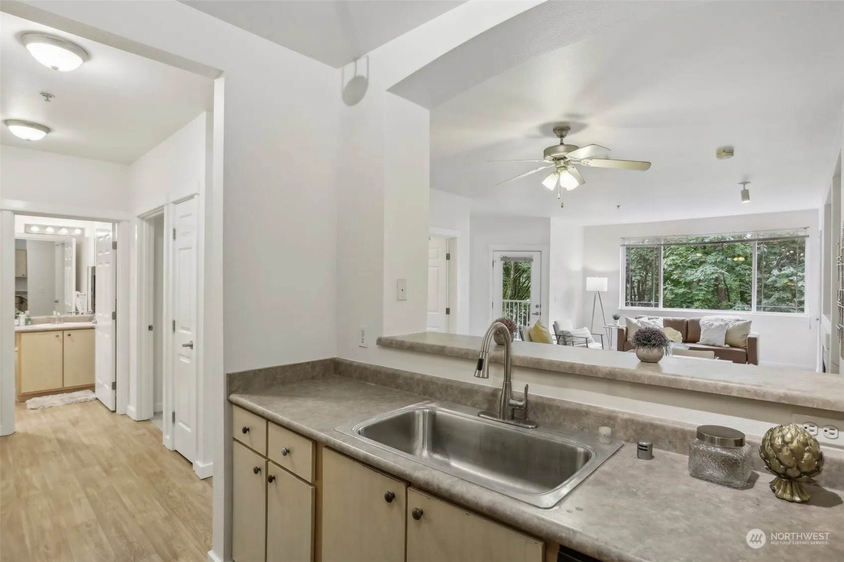 Conveniently located in Parterra, Newcastle, this freshly painted, ground-level condo features brand-new flooring and various updates throughout its spacious 2-bedroom, 2-bathroom layout. The bright unit boasts an open floor plan w/ 9-foot ceilings, a large kitchen w/ stainless steel appliances, & a cozy fireplace. The primary bedroom offers a walk-in closet & a 5-piece bath with a soaking tub. Enjoy the expansive patio w/ breathtaking views of Lake Boren. The secure building includes amenities such as a hot tub, gym, gated 2 car tandem parking space, & w/ the added benefit of an extra large approx 30 sqft walk-in storage unit next to the condo. Easy access to I-405, I-90, shopping, dining, & the extensive trails of Cougar Mountain Park.
